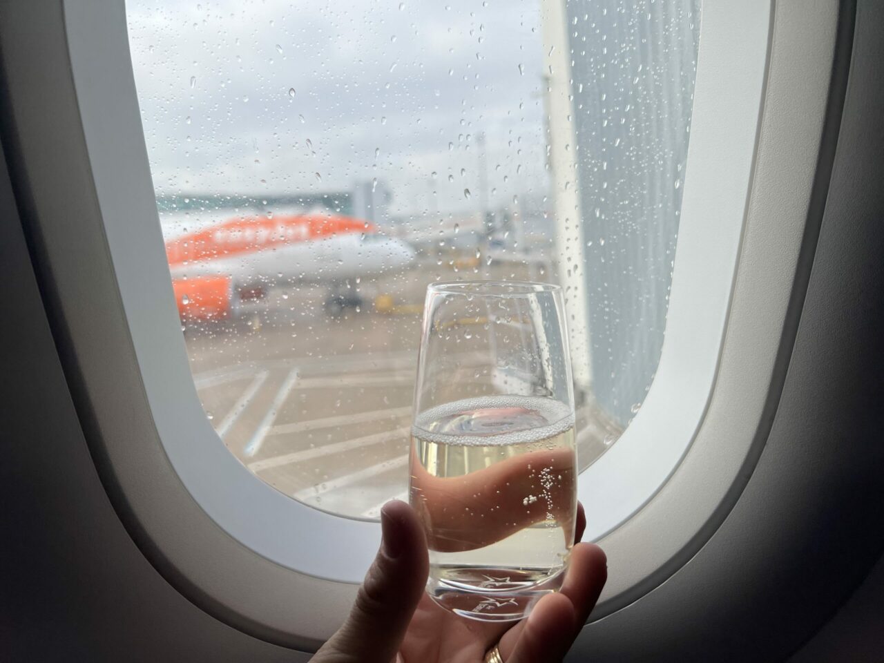 “Bubbles” were offered in glasses, not plastic (!), after boarding. While not a premium champagne, the prosecco was decent although I didn’t manage to get a glance of which brand it was. This was followed up with a drink and snack after departure.
