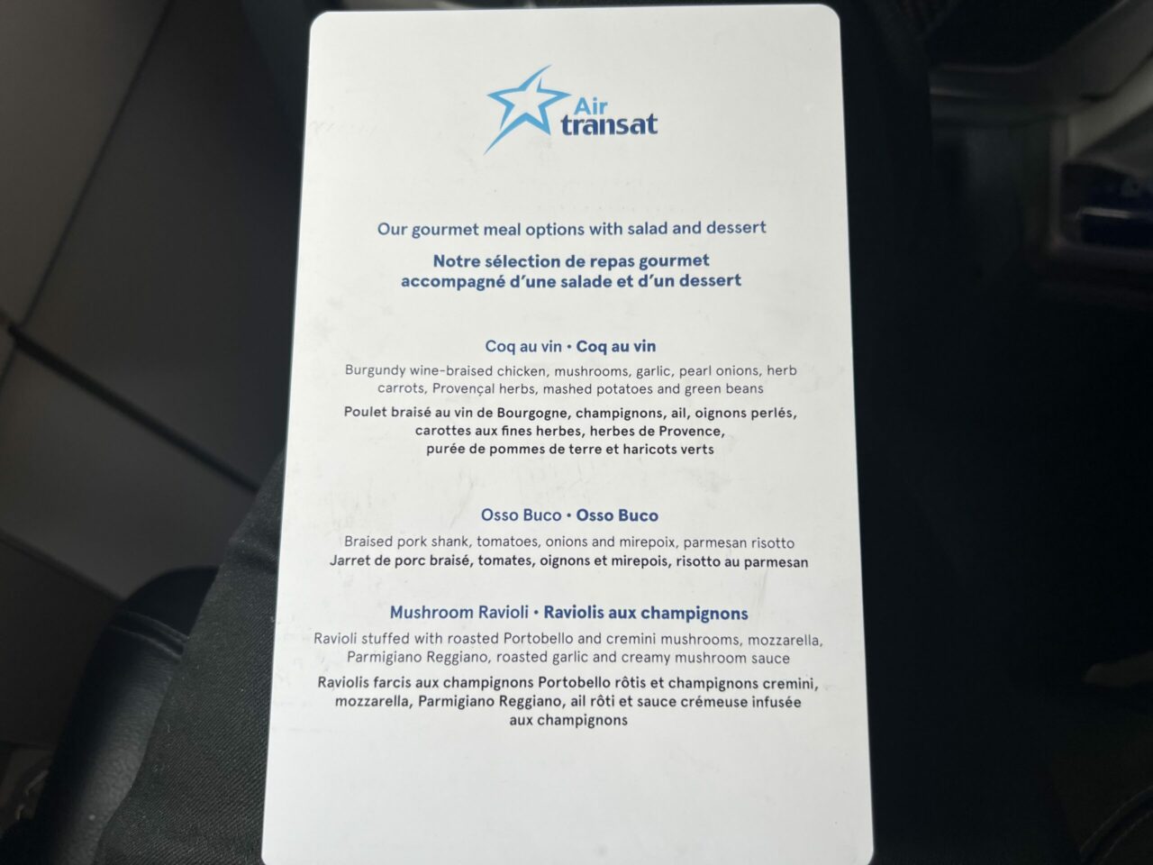 Here’s where Air Transat shined brightest. I can say the service offered by Kimberley and Marcus was excellent – warm, genuine and consistent from start to finish. They were attentive to all passengers offering quick responses to requests and proactively offering top-ups throughout the flight. Together they pushed the whole Air Transat experience up a few notches.