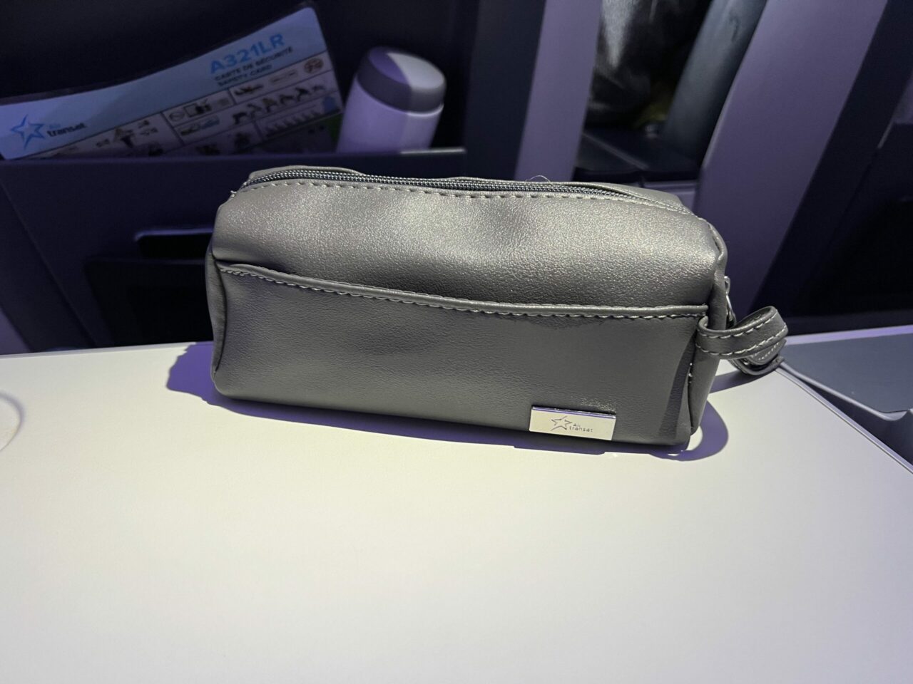 Air Transat provide Club passengers with a rather substantial amenity kit which seems more premium than that offered by other Premium Economy products. Placed on the seat prior to boarding, the airline provides two key amenities.