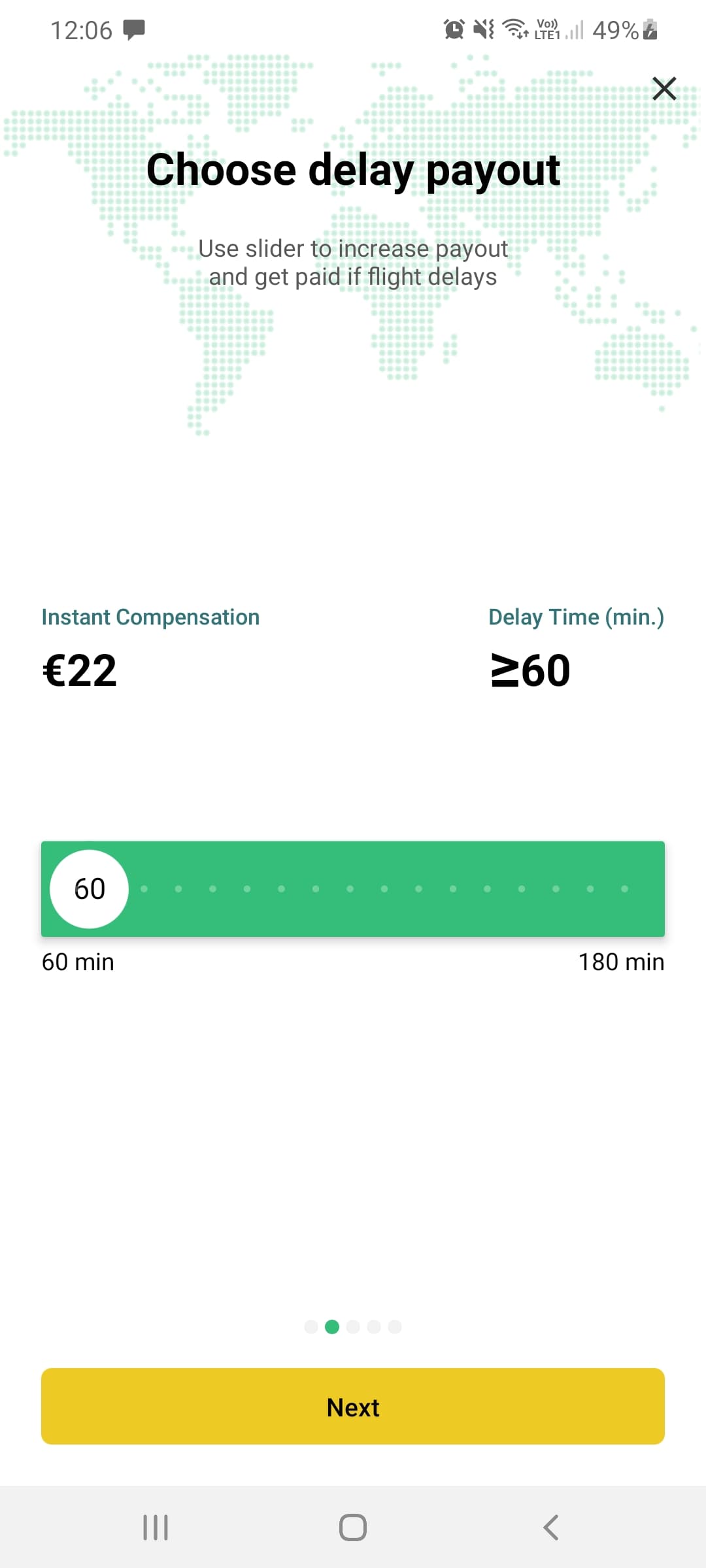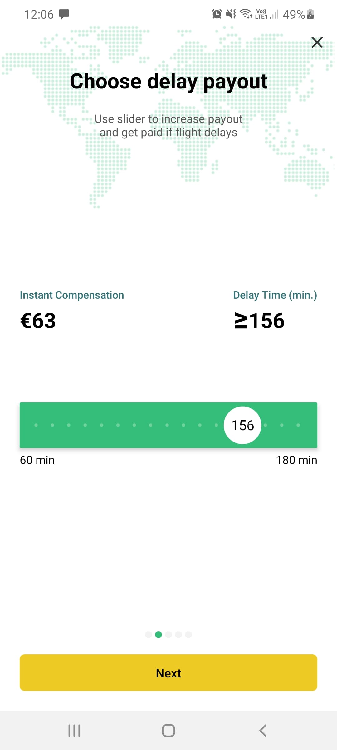 The sliding payout option allows passengers to customise their pay-out likelihood vs the amount