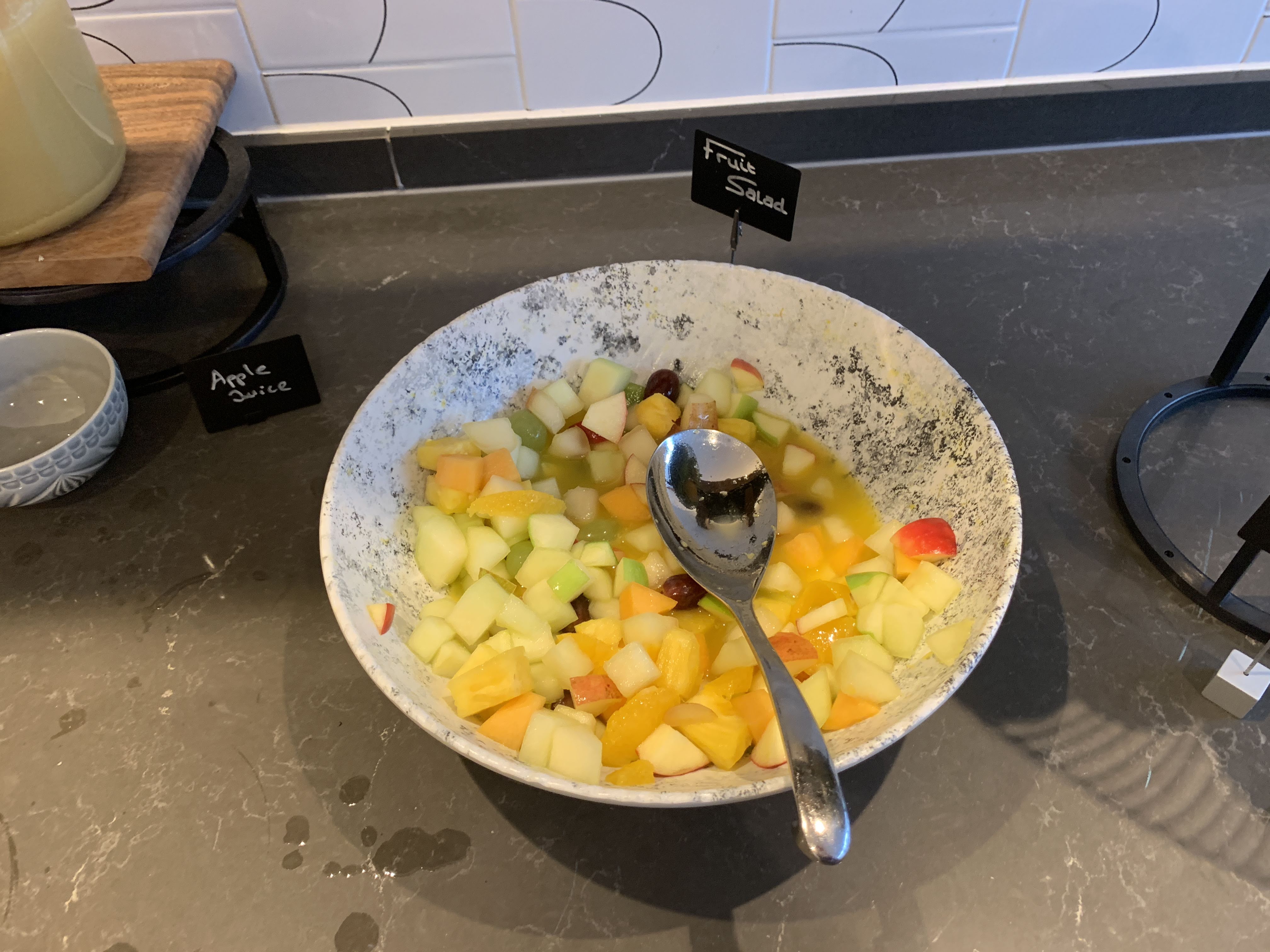 I spotted some very dodgy-looking scrambled eggs which reminded me of the very odd eggs I had on Qatar Qsuites last year which resembled eggy bath sponge. I decided to brave it and try a tiny amount. They were as bad as they looked with a very strange grainy rubbery texture. I did feed all this back to a member of management before I left so hopefully they have now fixed the issues.