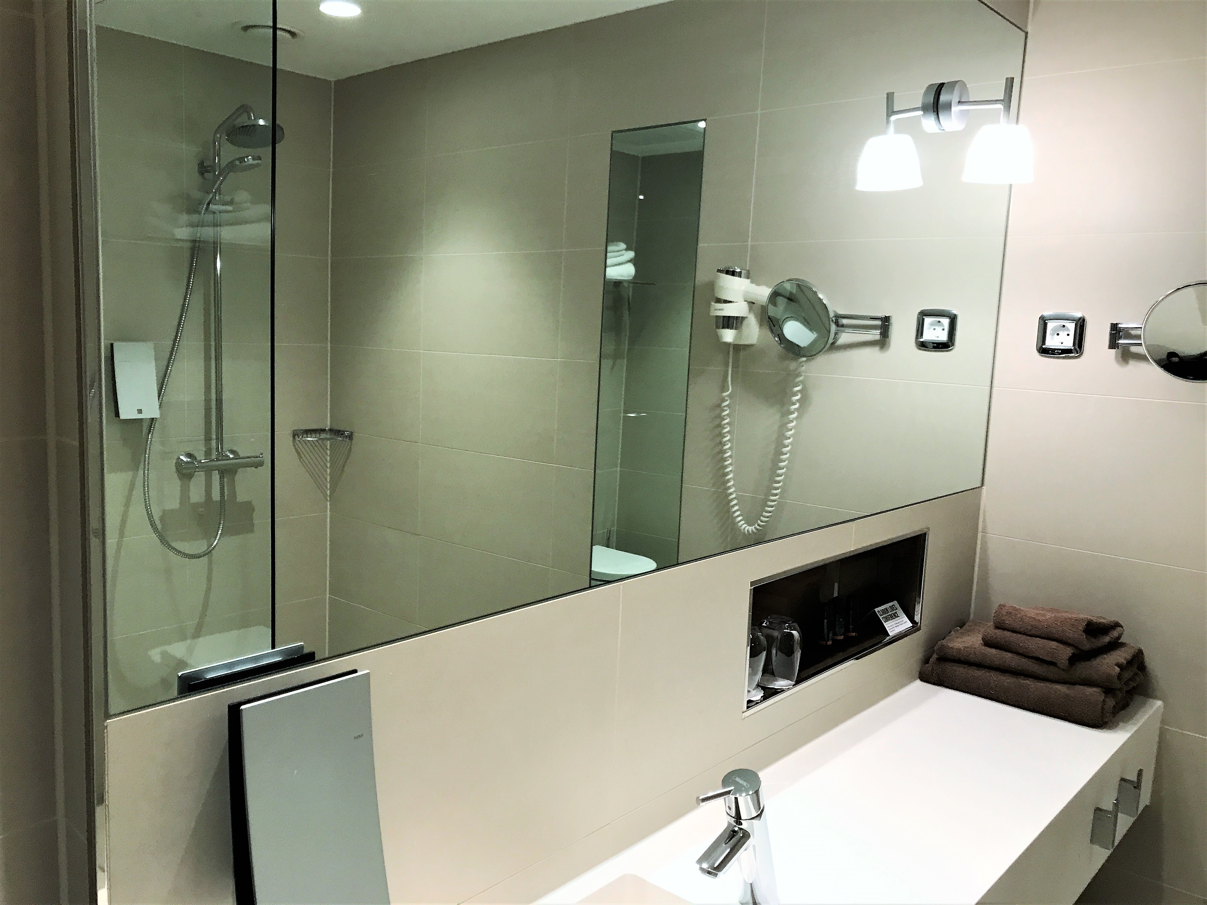The room itself was fairly standard Hilton design with light wood and white bedding. The bed was not as hard as some Hilton beds and the room was very quiet. The room had everything I needed including tea and coffee and a separate bath and shower. The only thing I wasn’t keen on was the tiny side cubby holes instead of tables by the bed as there wasn’t much room to put stuff but there was a power socket at least. The hotel has a gym, sauna and an Executive lounge. I was up too early to bother with breakfast.