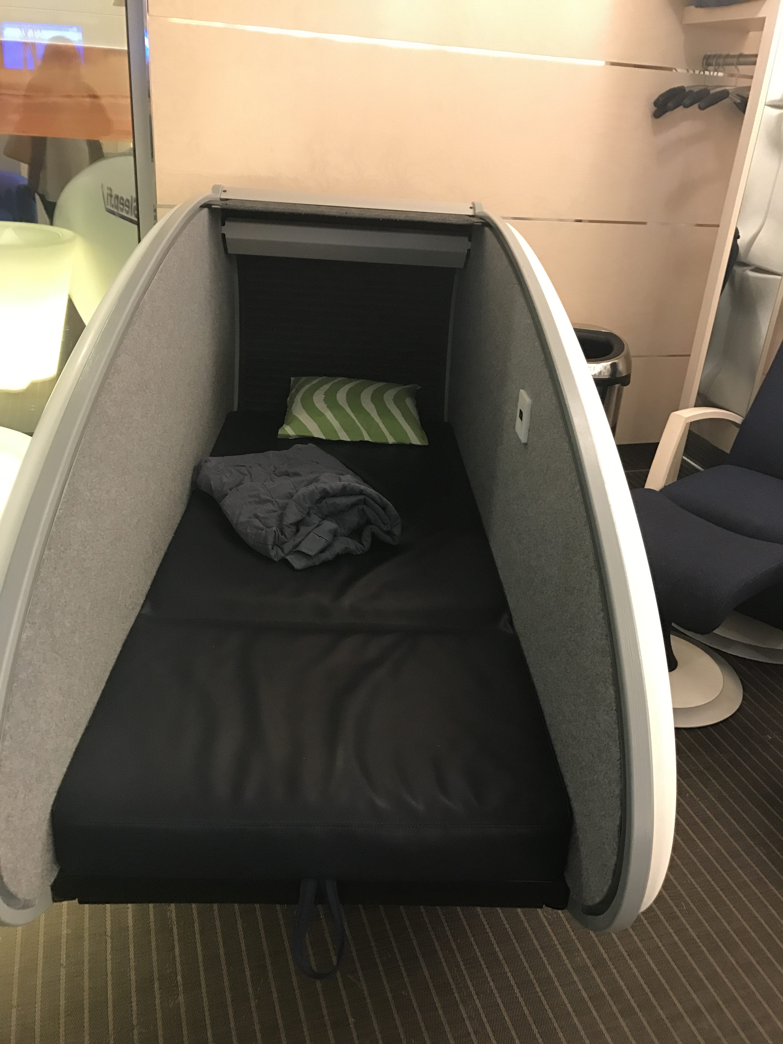 In the business class lounge there is a business centre with Mac computers, a similar range of food to the Premium side and help yourself wine (including sparkling) and draft beers. I was particularly impressed with the sleep pods that would offer privacy and darkness if you fancied a bit of a snooze.