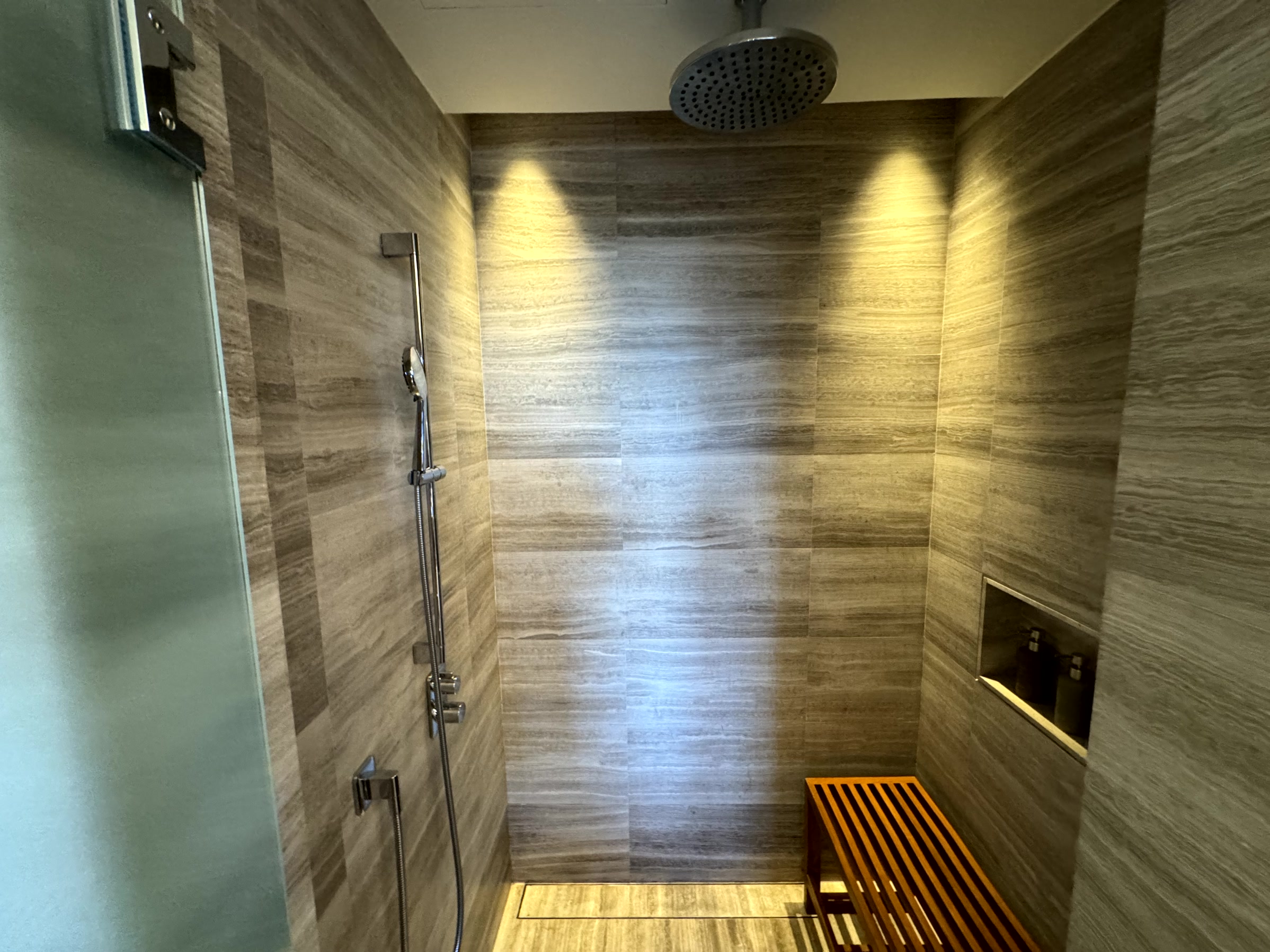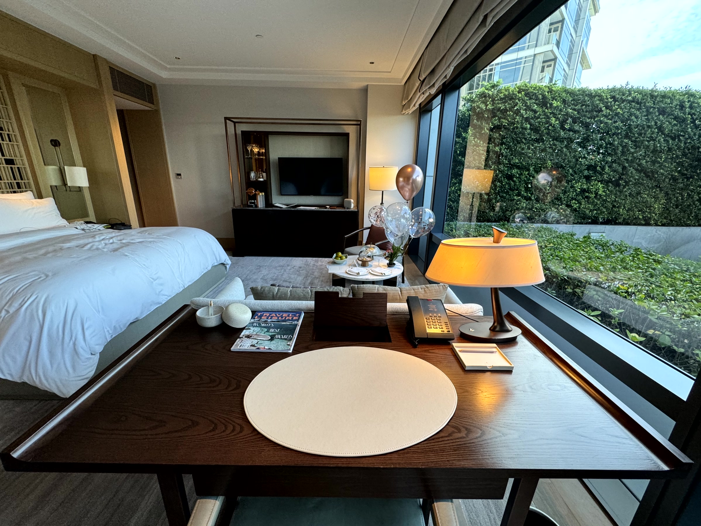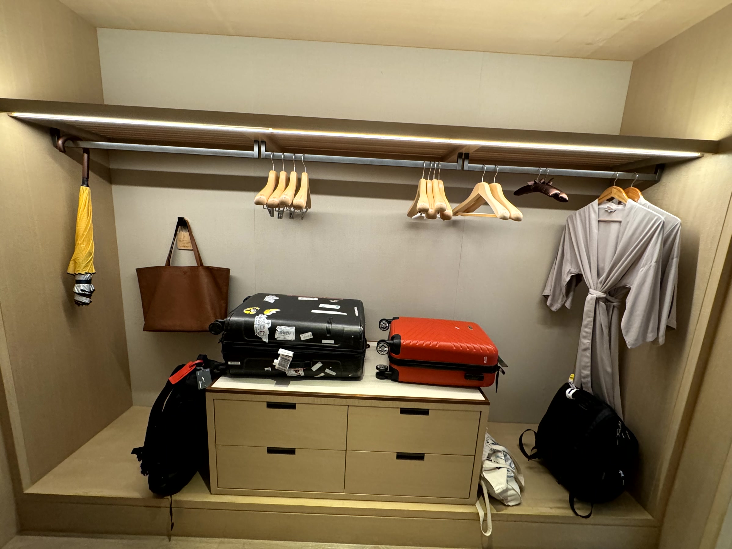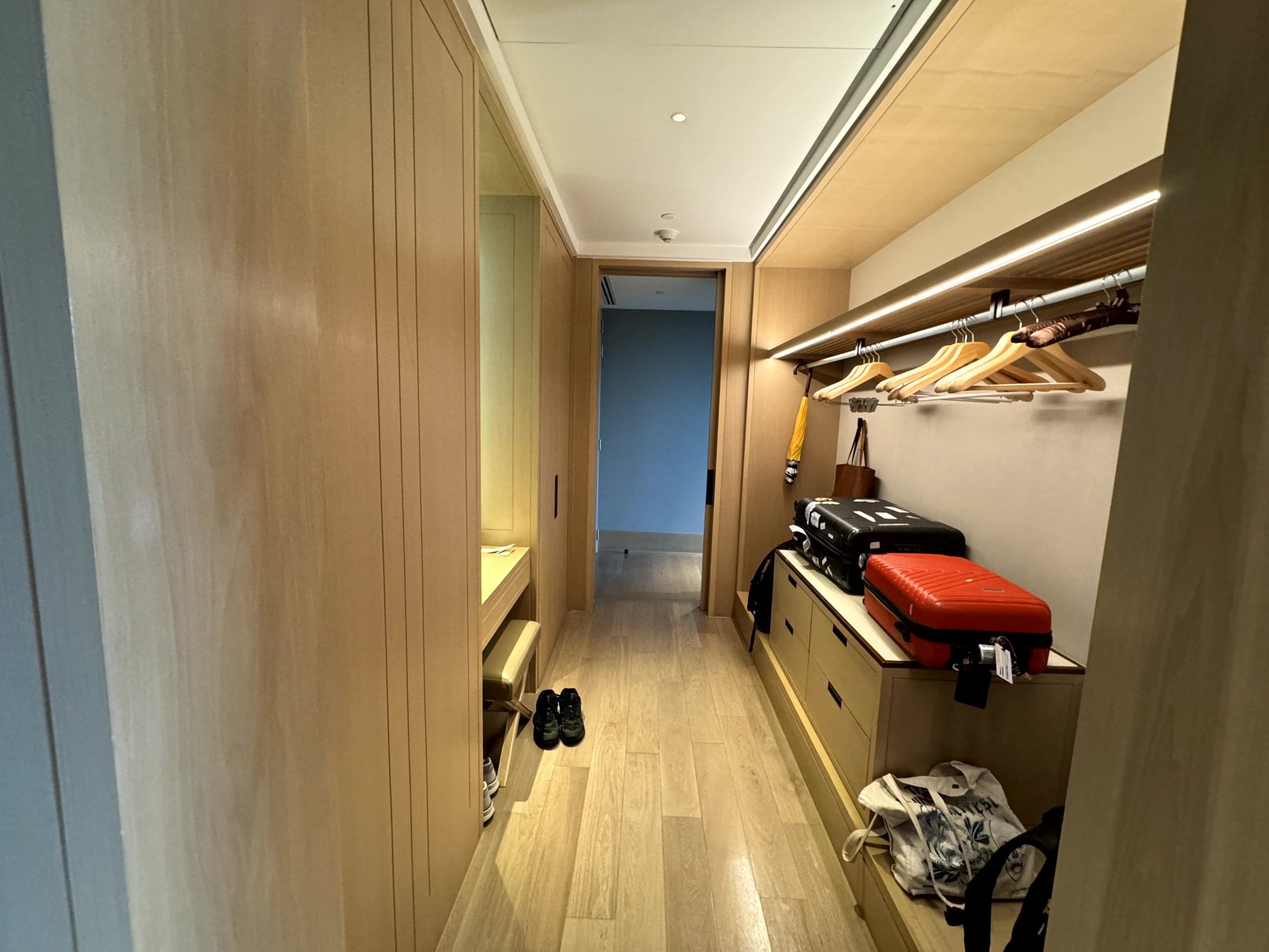Behind the bedroom, there is a walk-in wardrobe with plentiful space – easily enough for a week’s worth of clothes for two. An in-room safe is provided by the hotel while a cubby hole for collection and drop-off of laundry is quite a useful feature to avoid being disturbed in the room.