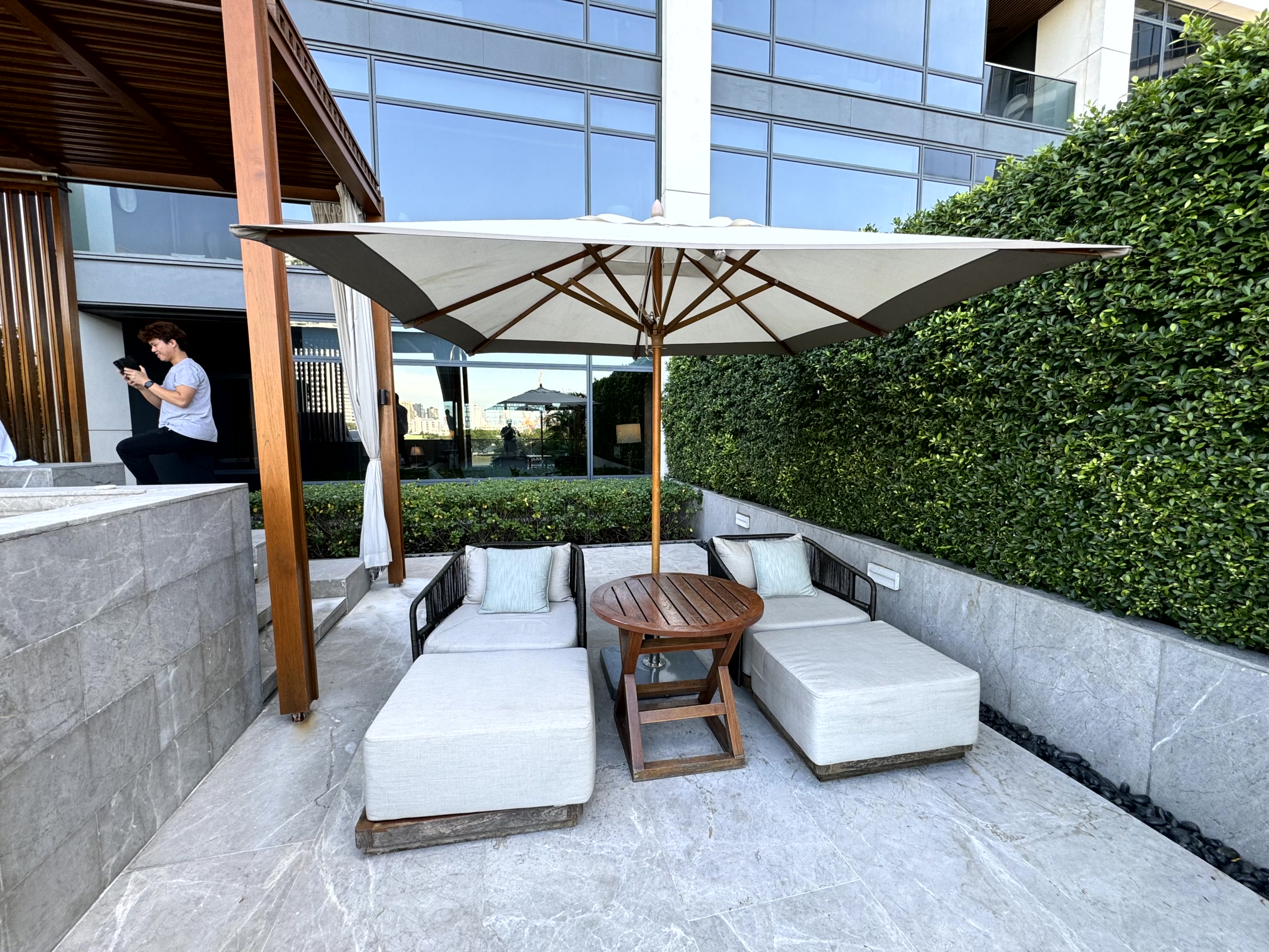 I had a delicious snack meal by the pool but the experience was spoilt by a woman, Chinese I think, swimming in the pool, hawking and spitting into the water. Okay, not the hotel’s fault but rather off putting.