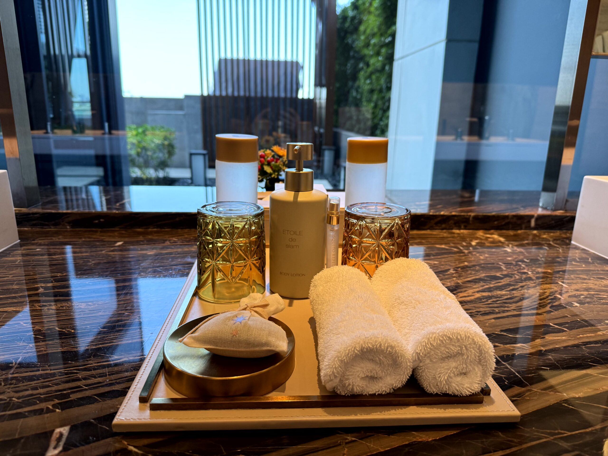 Check-in takes place in the Living Room – a beautiful space which turns the usual frantic process into a relaxed event. While signing the relevant forms, we were offered an iced honey and turmeric drink as well as ice cold towel (the first of many on this trip across Thailand and Cambodia).