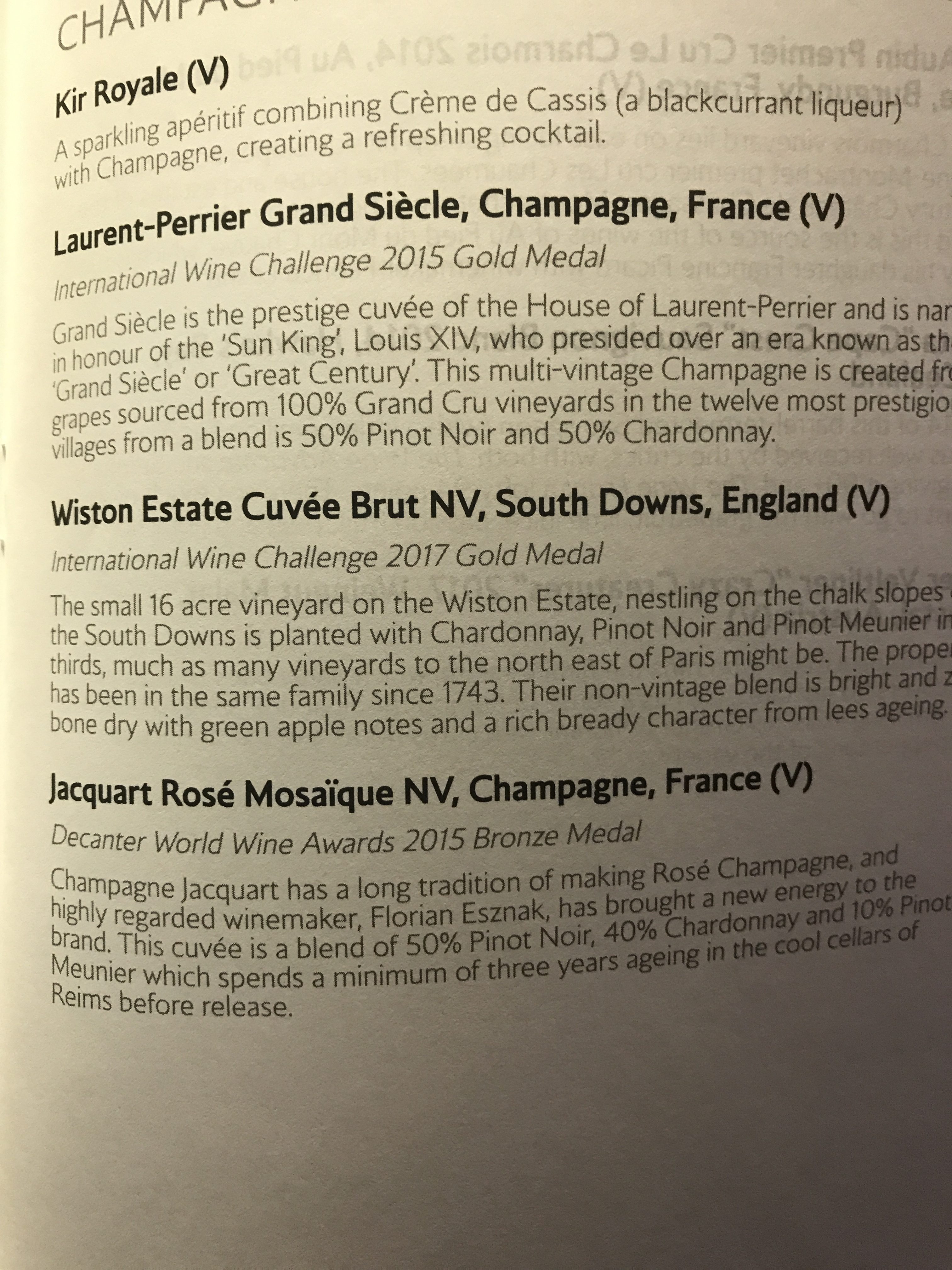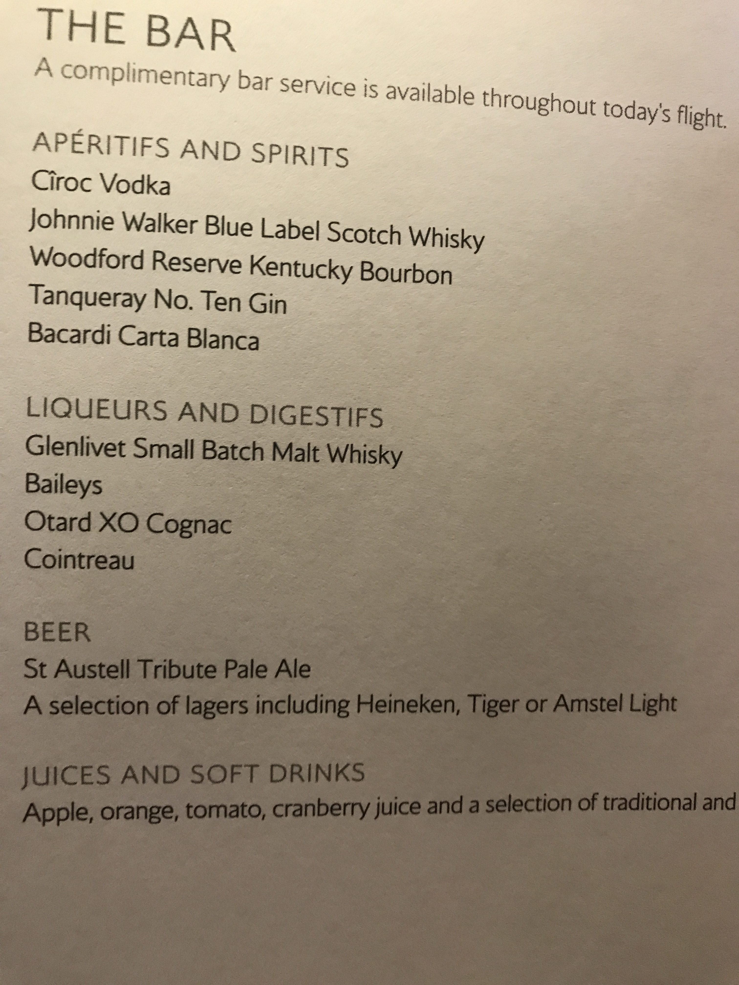 I was then offered a drink. I chose champagne and wished I hadn’t…. One small glass of pre-poured luke warm fizz that was very definitely not Laurent Perrier Grand Siecle. I was pretty sure it was Castel-no and asked the cabin crew what it was, I was surprised when she had no idea and went to check. Given that they only have a small number off champagnes on board I thought it odd not to know what they were serving. Even though we were on the ground no top up was offered (not necessarily a bad thing given the fizz in question ). Apparently, they only have one bottle for pre departures drinks for 14 people in First so a top-up won’t happen unless it is a light load.