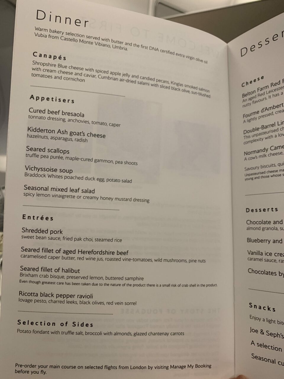The main let down was the food and speed of service. My main course was poor, and Paul’s was pretty average. It was annoying that they have removed the main course salad but appear not to offer anything more than very basic snacks on night flights. A proper return of the bistro menu would have been better for me. It seems odd to have better snacks in Club than you do in First. You do have dine on demand in First, but this is rarely proactively offered by the crew. If you do wish to do this, you still need to order it at the start of the flight to make sure you get it later.
