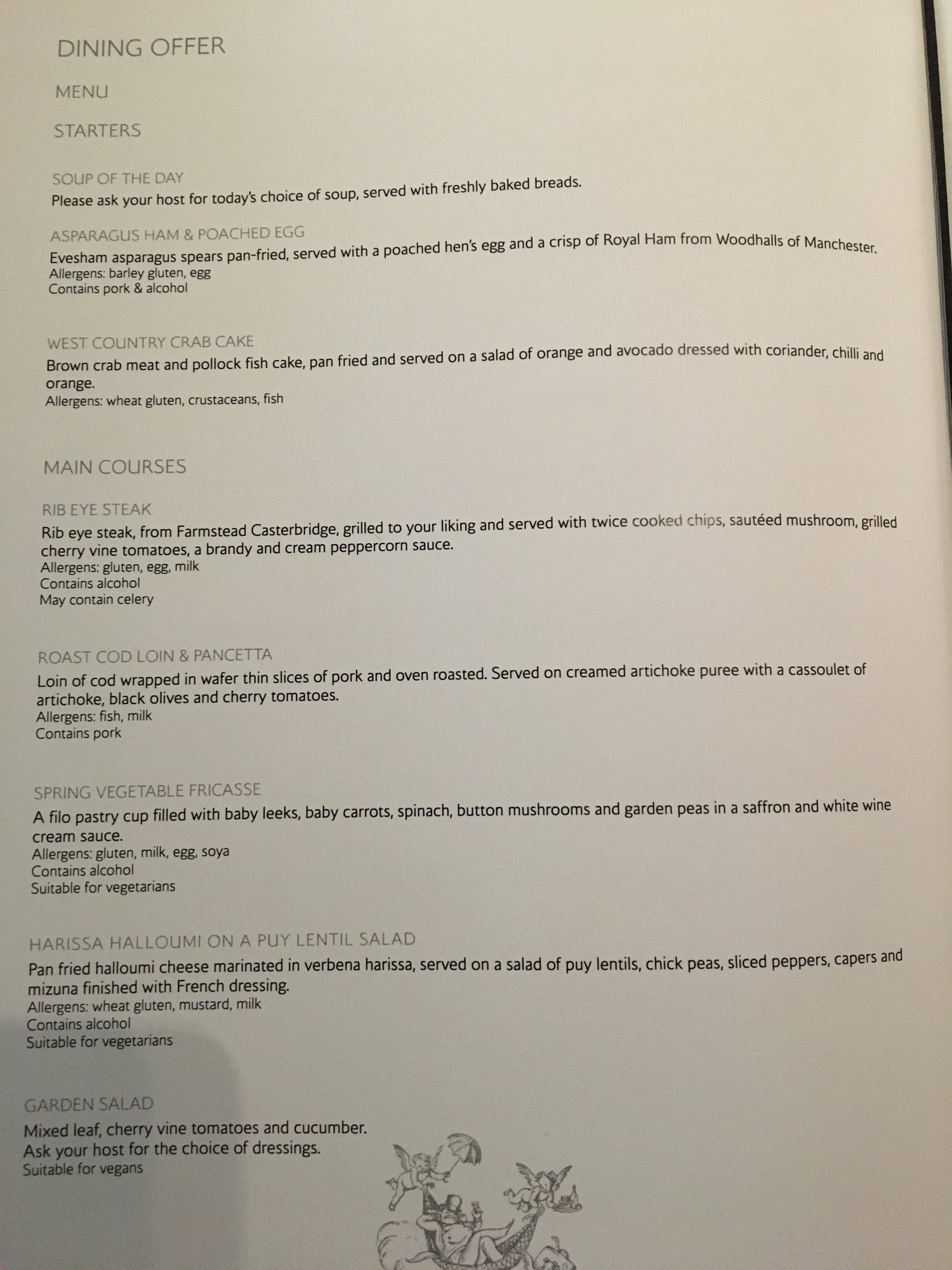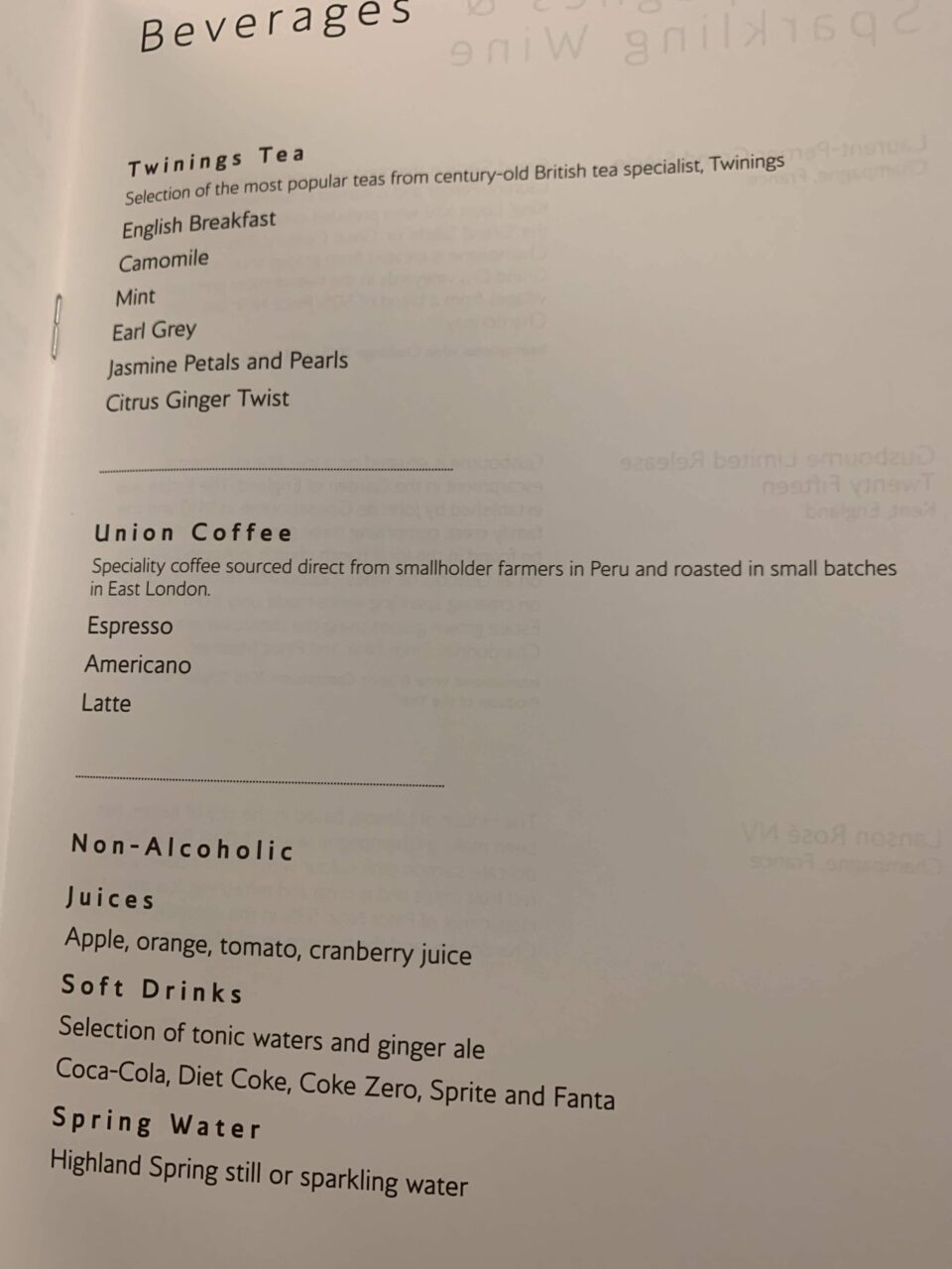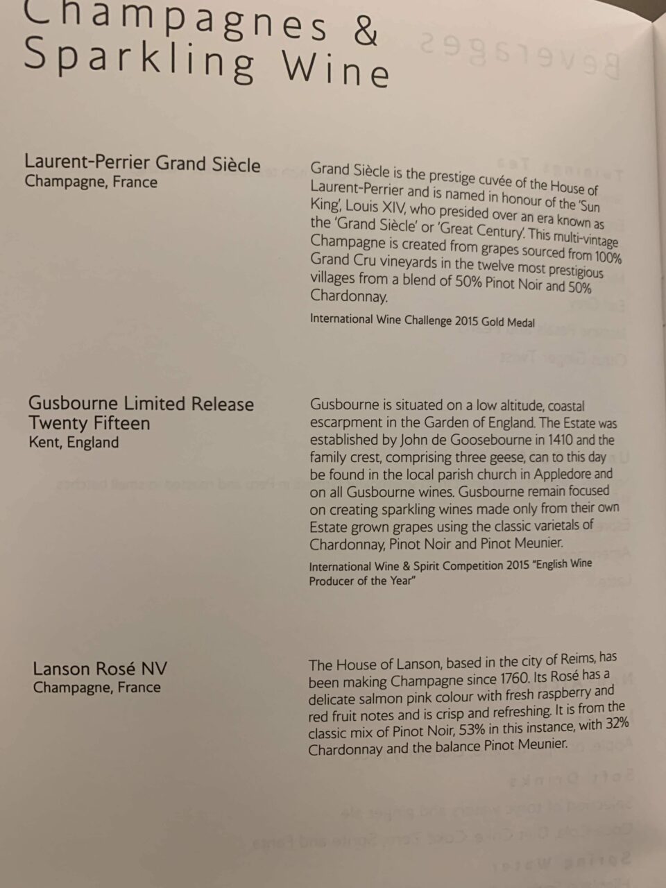 The reds were better. They listed two Bordeaux reds but as I expected only had one on board. I really enjoyed this wine, and it was the most expensive one on the list retailing at around £25-30. The Spy Valley Pinot Noir was also a wine I had tasted before, but it drank well in the air with the cherry and red fruit flavours coming through nicely.