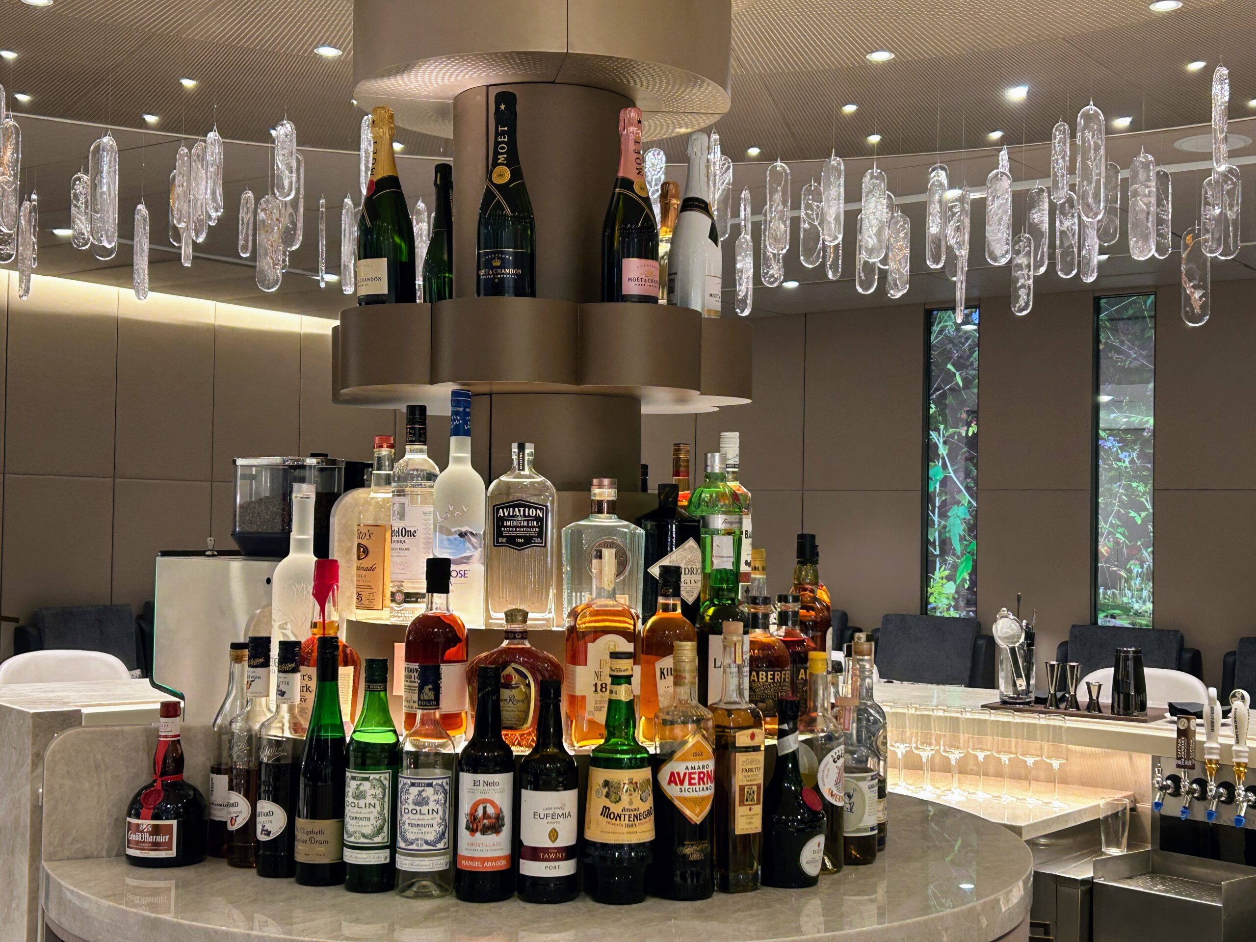 I have to say the cocktail bar with the glass ‘chandelier’ looks lush.