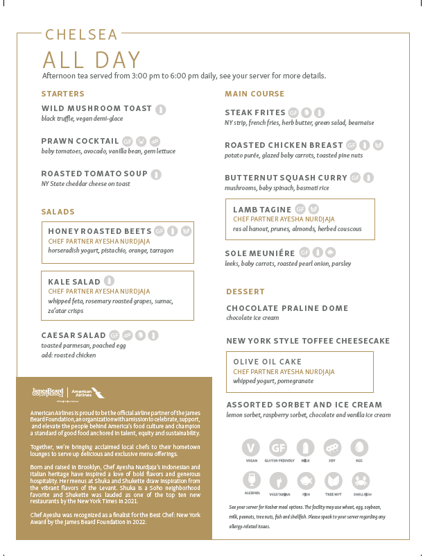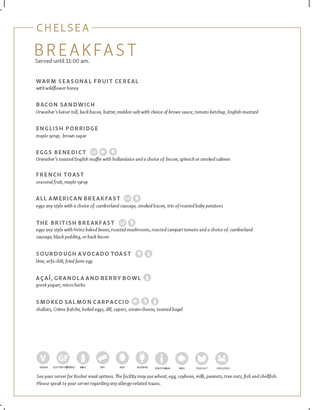 Looks great, I can’t wait to experience the Chelsea Lounge in January. Maybe I missed something, but I couldn’t see the Reuben sandwich or shepherd’s pie on any of the menus?