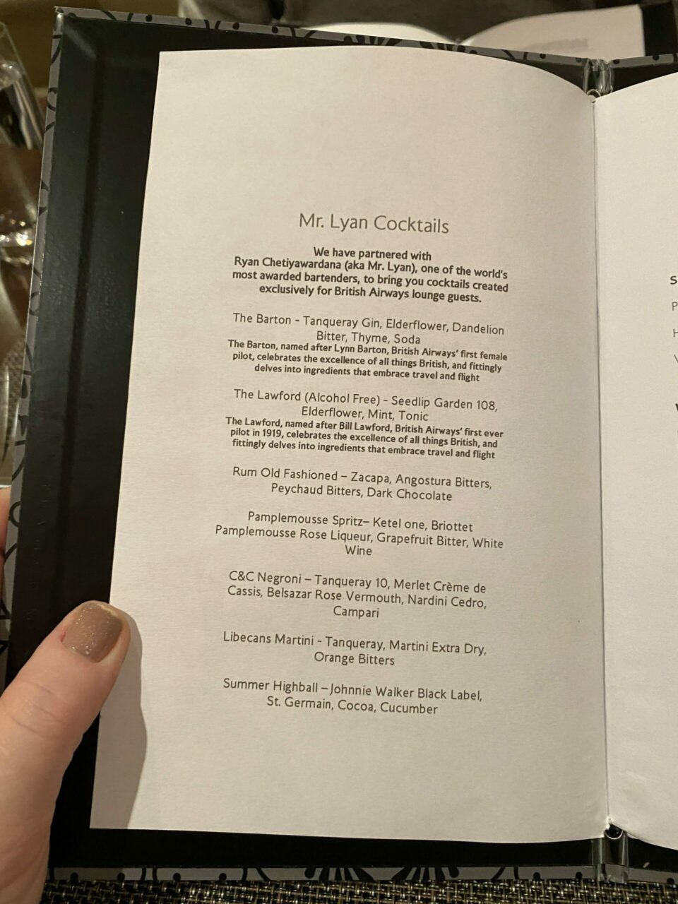 I also had the pleasure of talking to well known mixologist Mr Lyan who has been working with BA to design the cocktails for both Concorde Rooms and had done some special cocktails on the way out. He was a lovely guy to chat to and it sounds like they are looking at whether they may do some of his cocktails in the air as well which is great news.