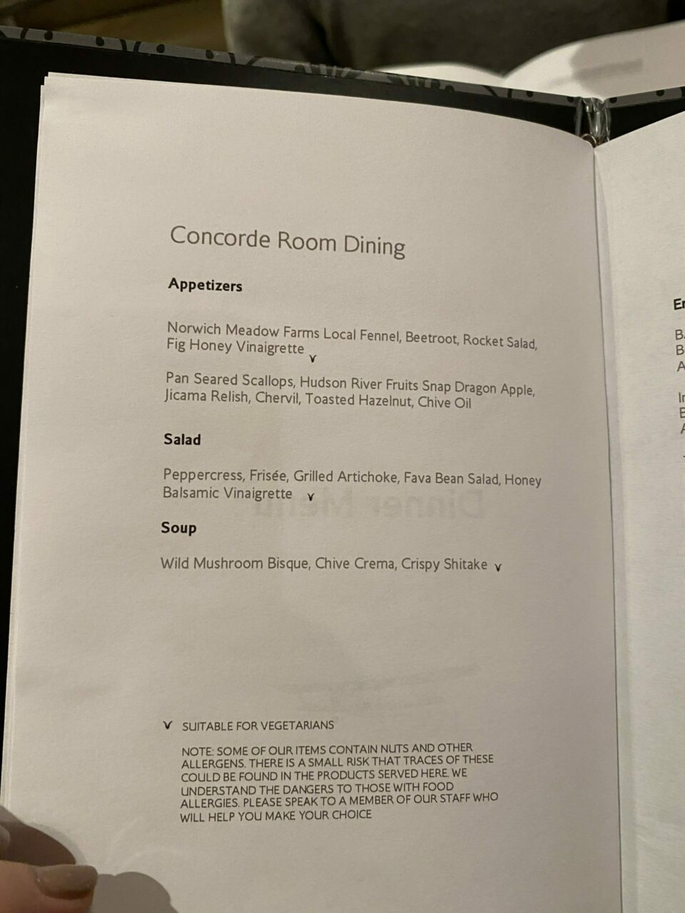 I decided to just have a starter as I was eating on the flight.