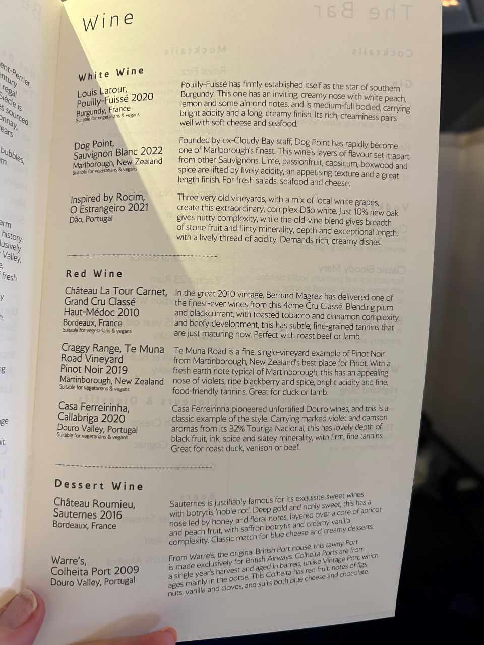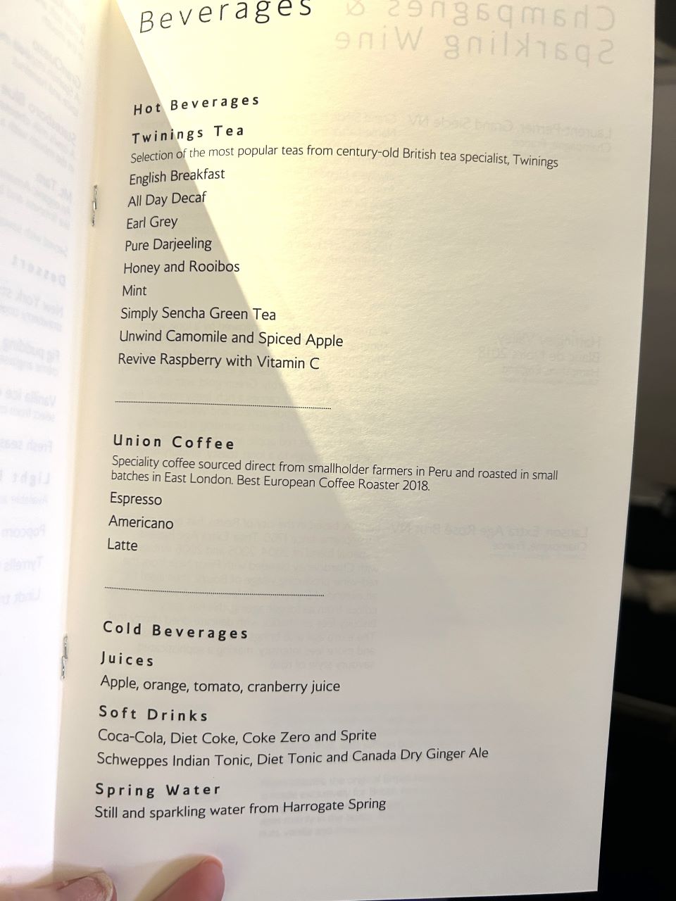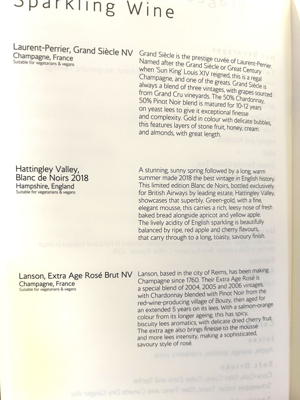 • British Airways First Class Food and drink