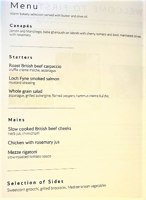 No more food boxes! It’s interesting to see that this menu features several of the dishes currently included in BA’s First dine at home box.