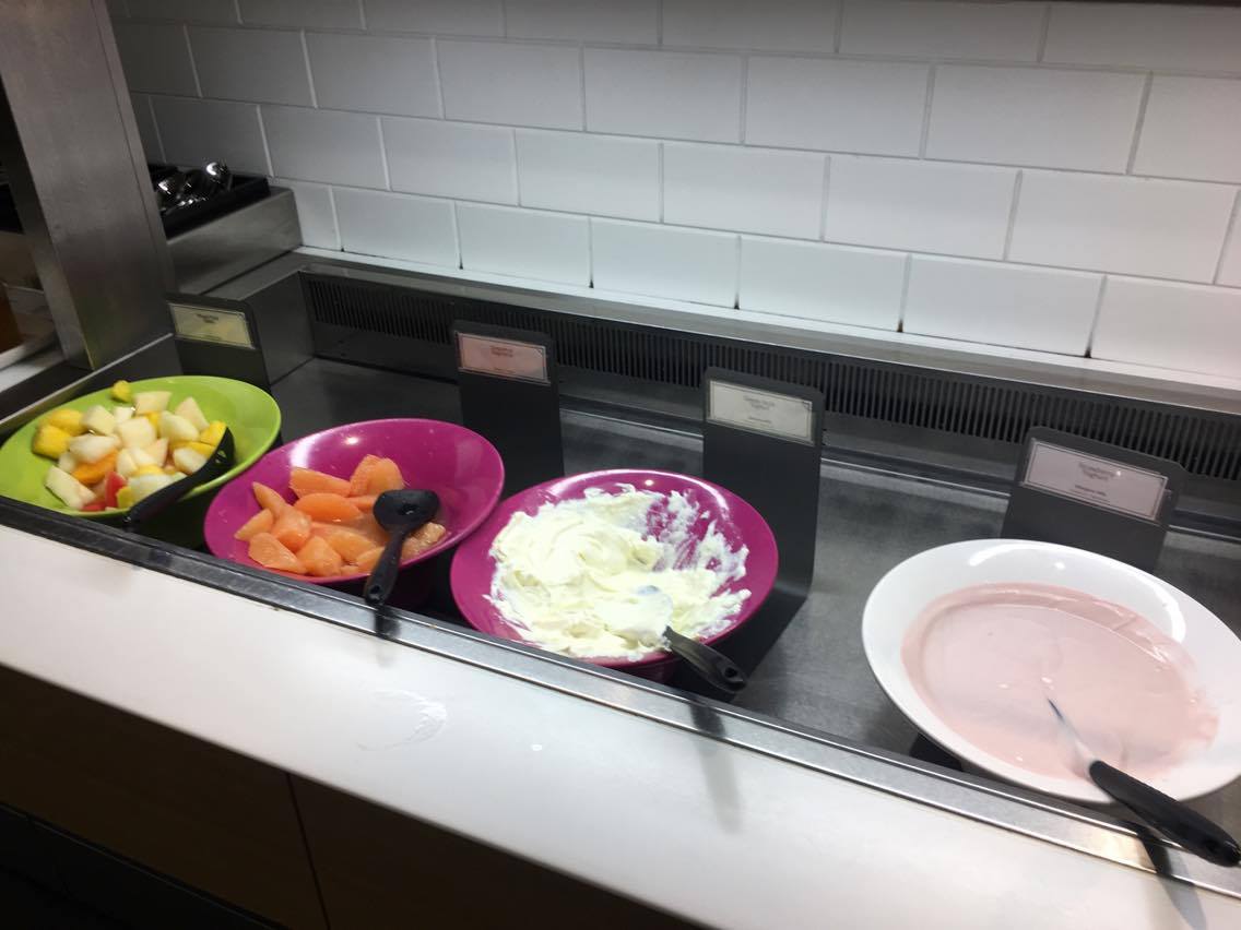 As usual the BA Club lounge breakfast was pretty dismal. Breakfast is served until 12pm apart from the bacon rolls. BA have now extended the bacon sandwiches until 11am and judging by recent surveys they have been considering improving the food at breakfast. Given that this costs money, I doubt anything much will happen soon. The food on offer was: