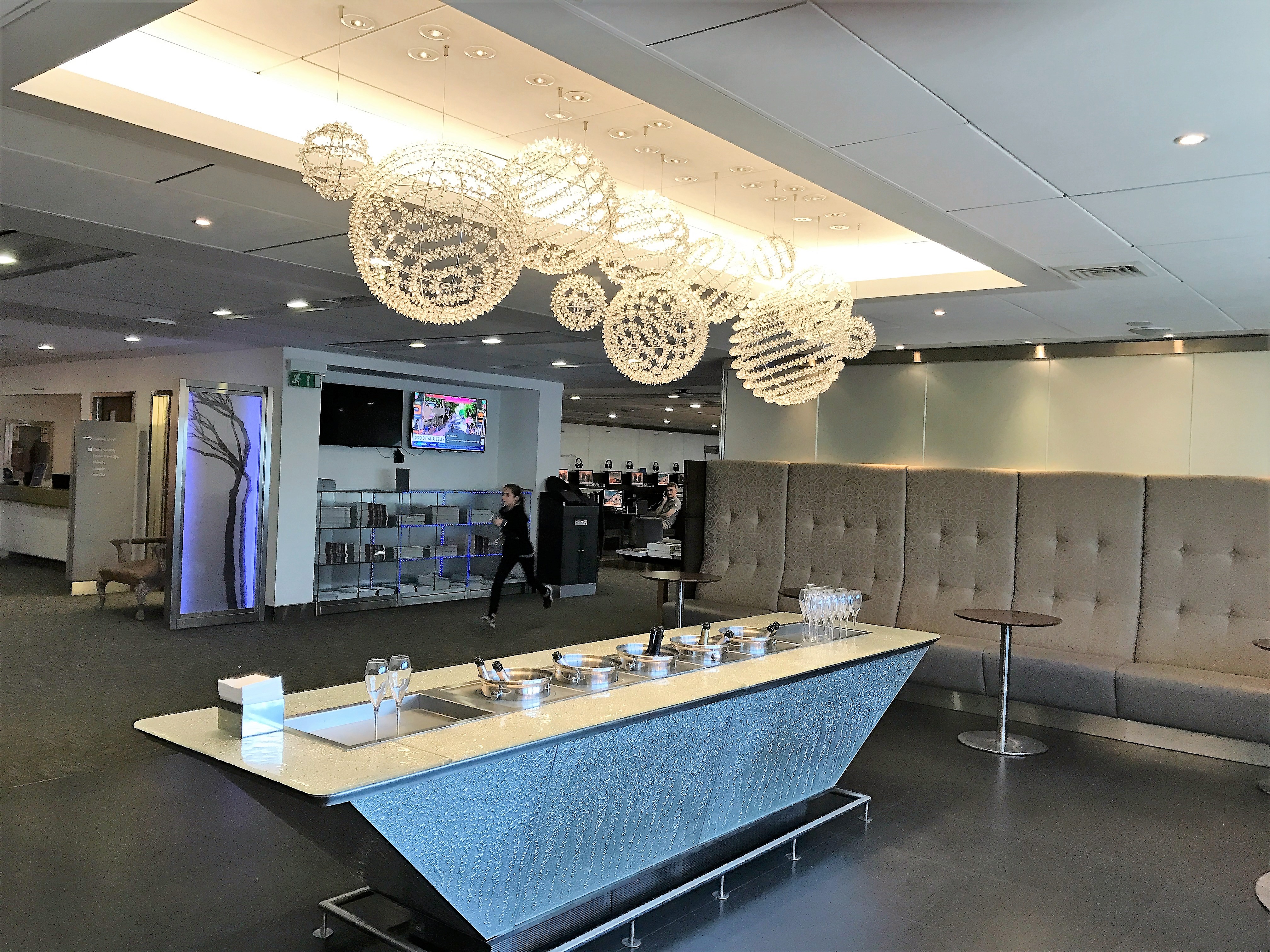 As you enter, you are facing the champagne bar. This is normally the quietest seating area, as the seats aren’t overly comfortable.