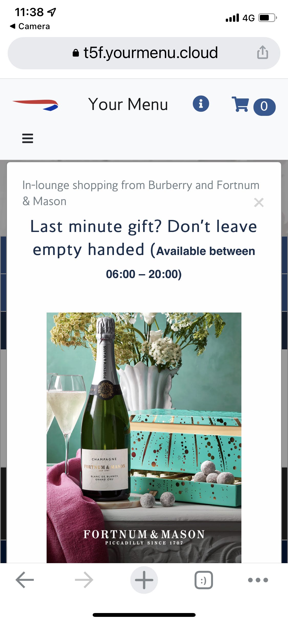 There is now also shopping brought to your seat which I think is a great idea. It’s only available for Fortnum and Mason’s and Burberry but you order through the app like food and then it is brought to your seat.