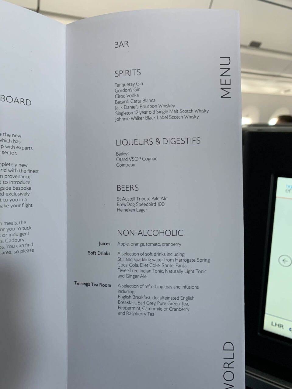 The TV screen was also a massive step up from the current Club World screens. It was 40% larger than the current one and HD. Like now, the screen can be controlled on the screen itself by touch or by using the handheld remote. I found the screen a little lagging at times, but no so much as to be a nuisance.