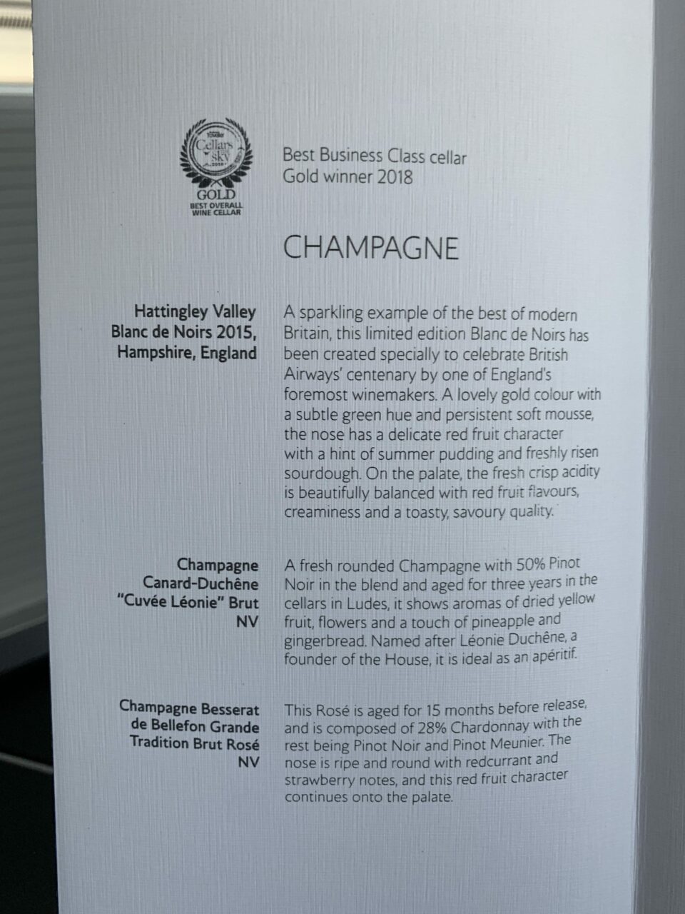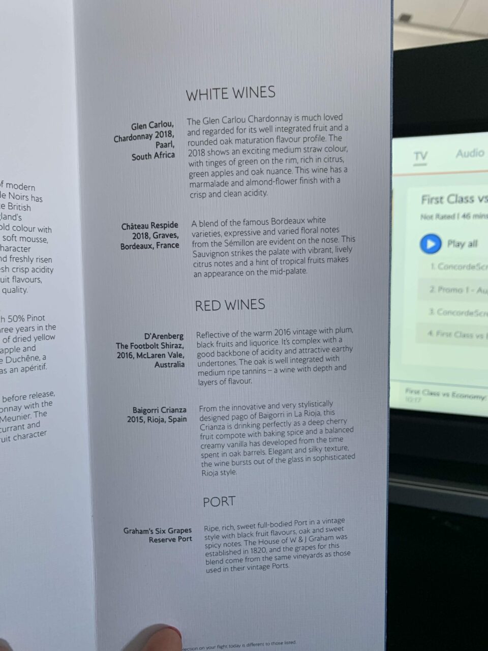 The entertainment had all the usual categories though such as films, TV and games. I didn’t have much time to explore the selections but there were plenty of new options as well as some special BA programmes. There was a moving map, but sadly BA did not go for the camera option on their A350s which allows you to see views outside the aircraft.