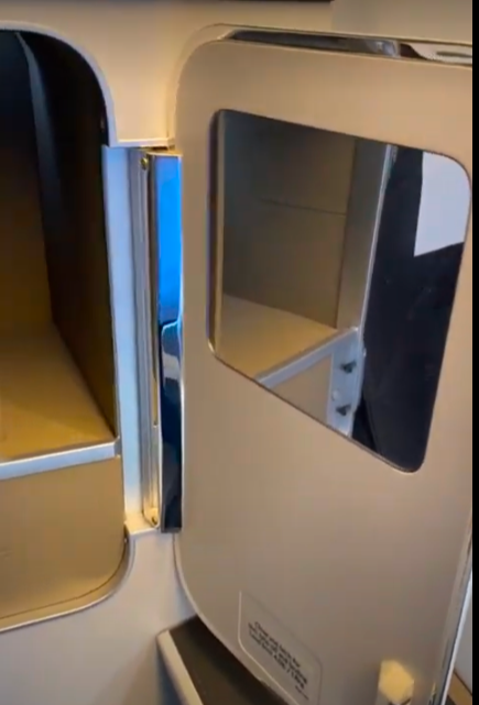 The cabin crew managed after a considerable amount of effort and time with two of them to get the seat to go flat. She then did a beautiful job of making it up to look very inviting. You get a soft mattress topper, duvet, day blanket, day pillow and a large fluffy pillow covered in crisp white linens. The bedding is just as good as it was before, so no complaints here. The crew were also good about closing the doors whenever they brought or collected anything. It felt very private with the doors shut but not at all claustrophobic.