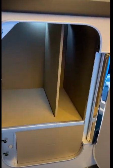 There was also an ottoman next to the footstool which opened up into a large bin big enough to store your smaller hand luggage in most cases.
