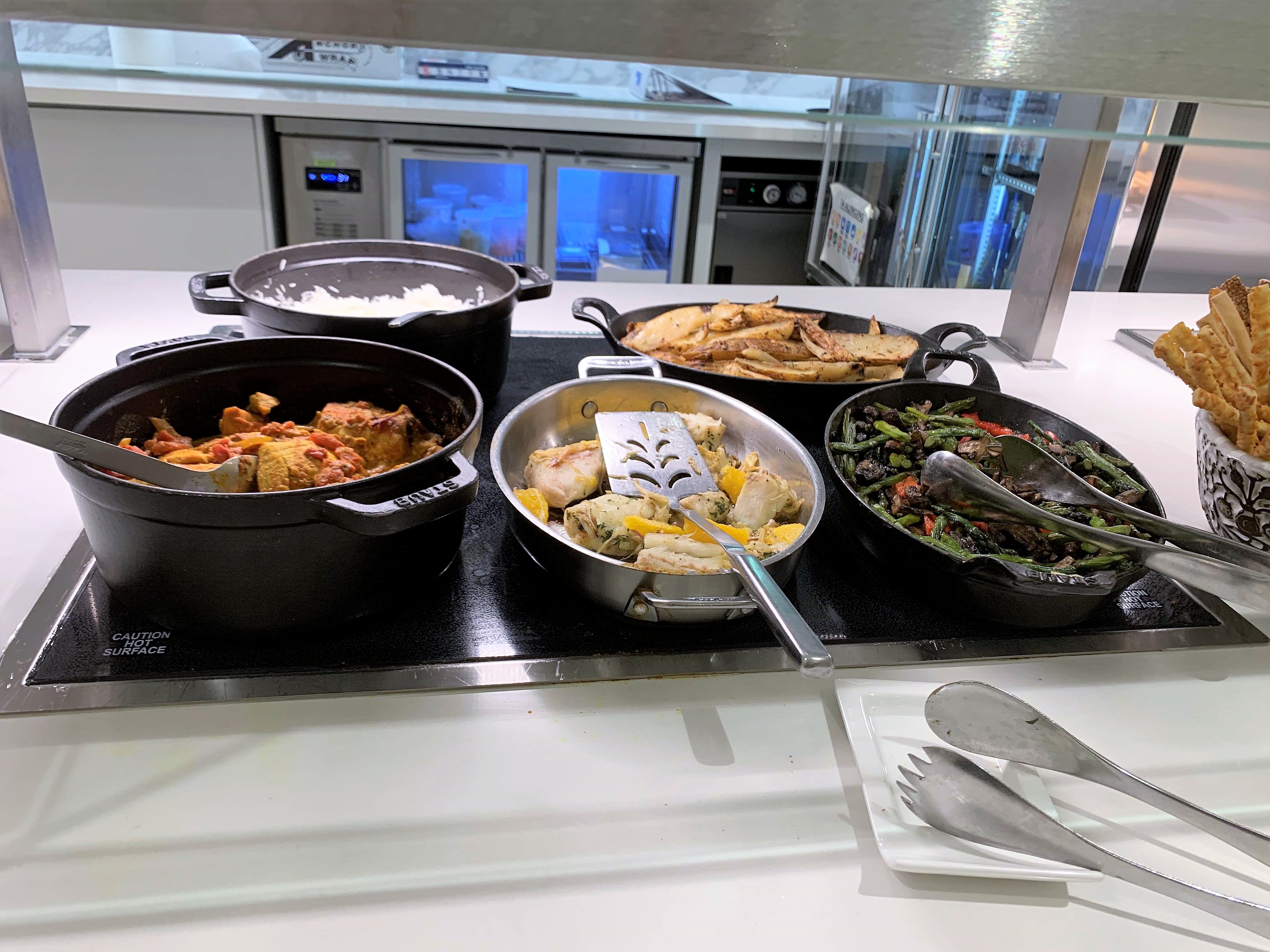 Food in the CCR is served in the dining room with its private booths and table service. This feels quite a step up from the Boutique dining area in the First lounge. You can also get waiter service anywhere in the lounge, like at Heathrow.
