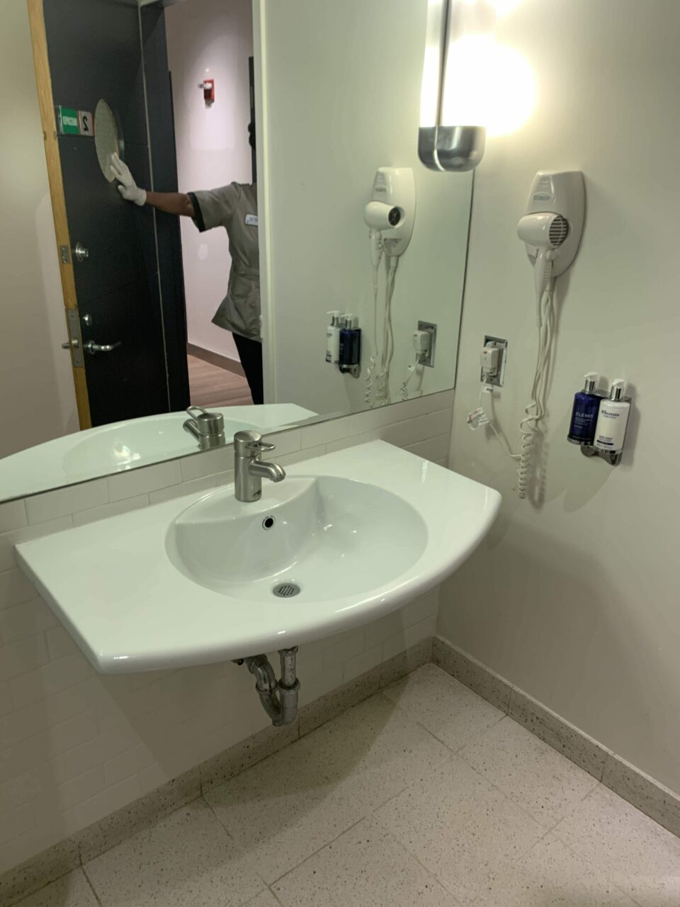 The lounge felt a little poorly and somewhat sparsely arranged at this time in the day (0620). For example, the fresh fruit juices were only available from the furthest station from the entrance but the main breakfast area was by the entrance. This meant a bit of a trek from one or the other carrying choices to our seating. There were two ‘cereal’ areas, only one of which had fresh fruit and yogurt available. None of the restaurant or bar areas were open or staffed, so it was a self-service buffet breakfast only. The hot breakfast had a reasonable selection, but of course some of the options looked a little ‘tired’ under the heat lamps.