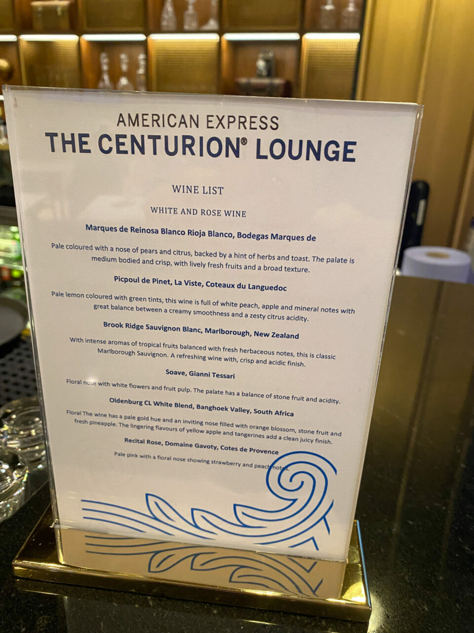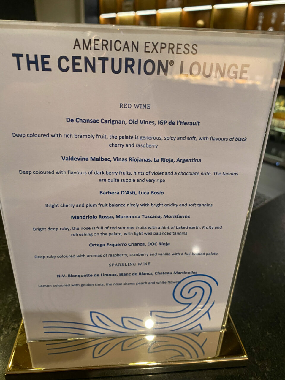 Instead, I headed over to the American Express Centurion lounge. I covered the Centurion lounge in detail here. On this visit I just checked out what was available to eat and drink. I have to say I was pretty impressed. It’s certainly far superior to all the other third-party lounges at Heathrow. 5:30 am – 9 pm.
