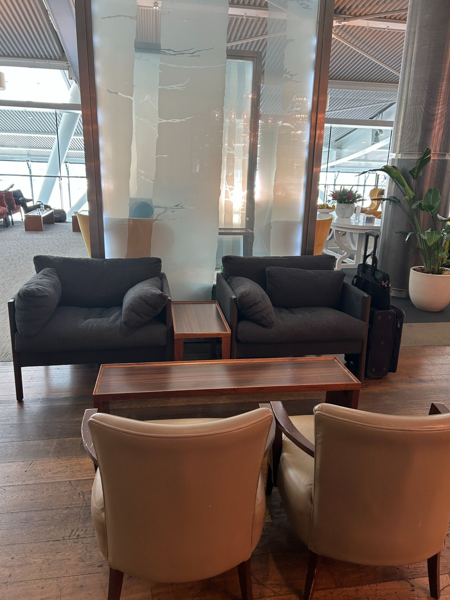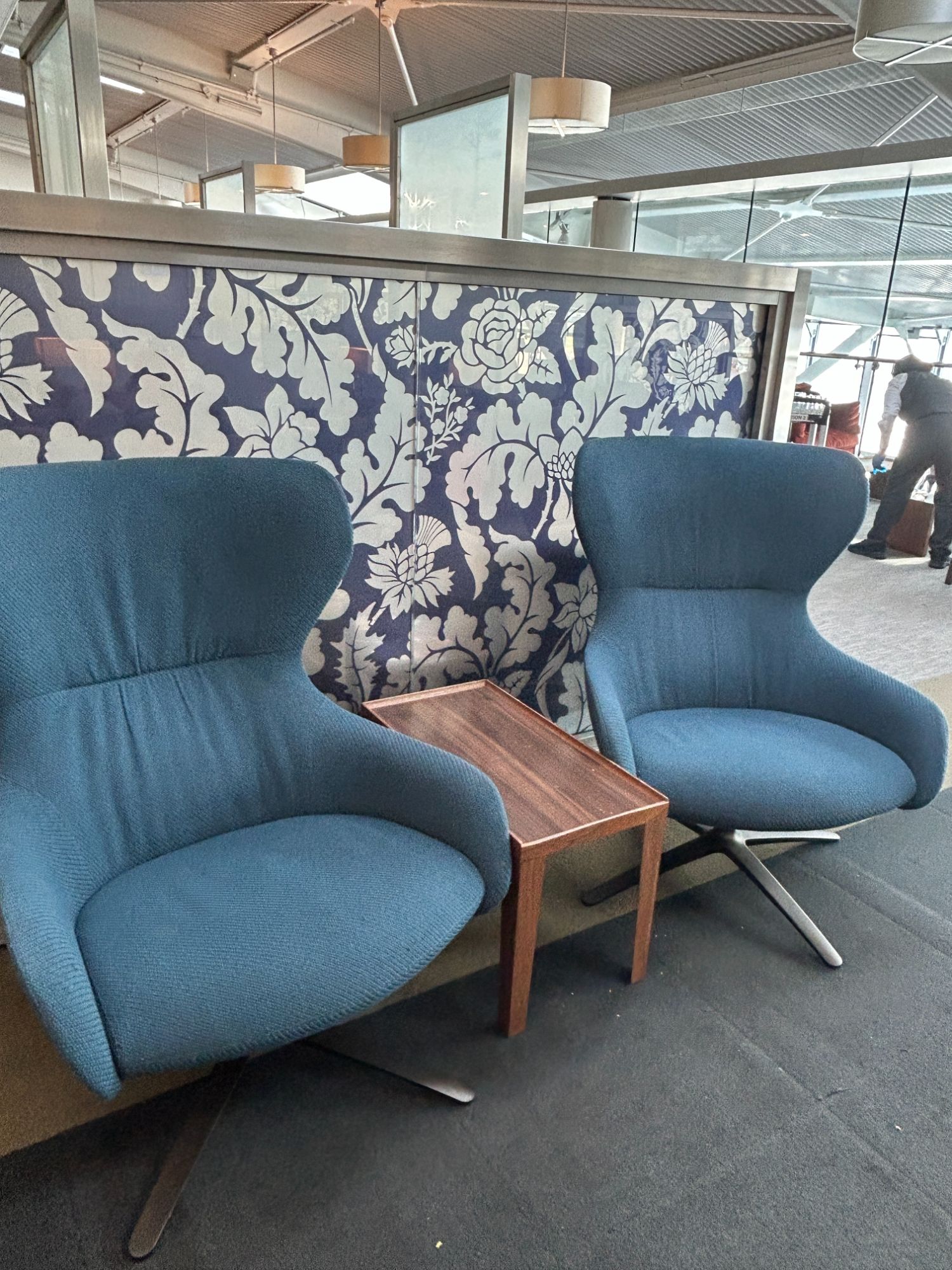 Some weird colour choices, not exactly a cohesive design. Definitely not cool, just boring. The chairs along the bar are stupid. Also don’t like the black lights. We have the best designers in the world. What happened? Shame they haven’t refurbed the other lounges as they are now tatty and embarassing but at least they can now learn from this lounge. Thanks 🙂