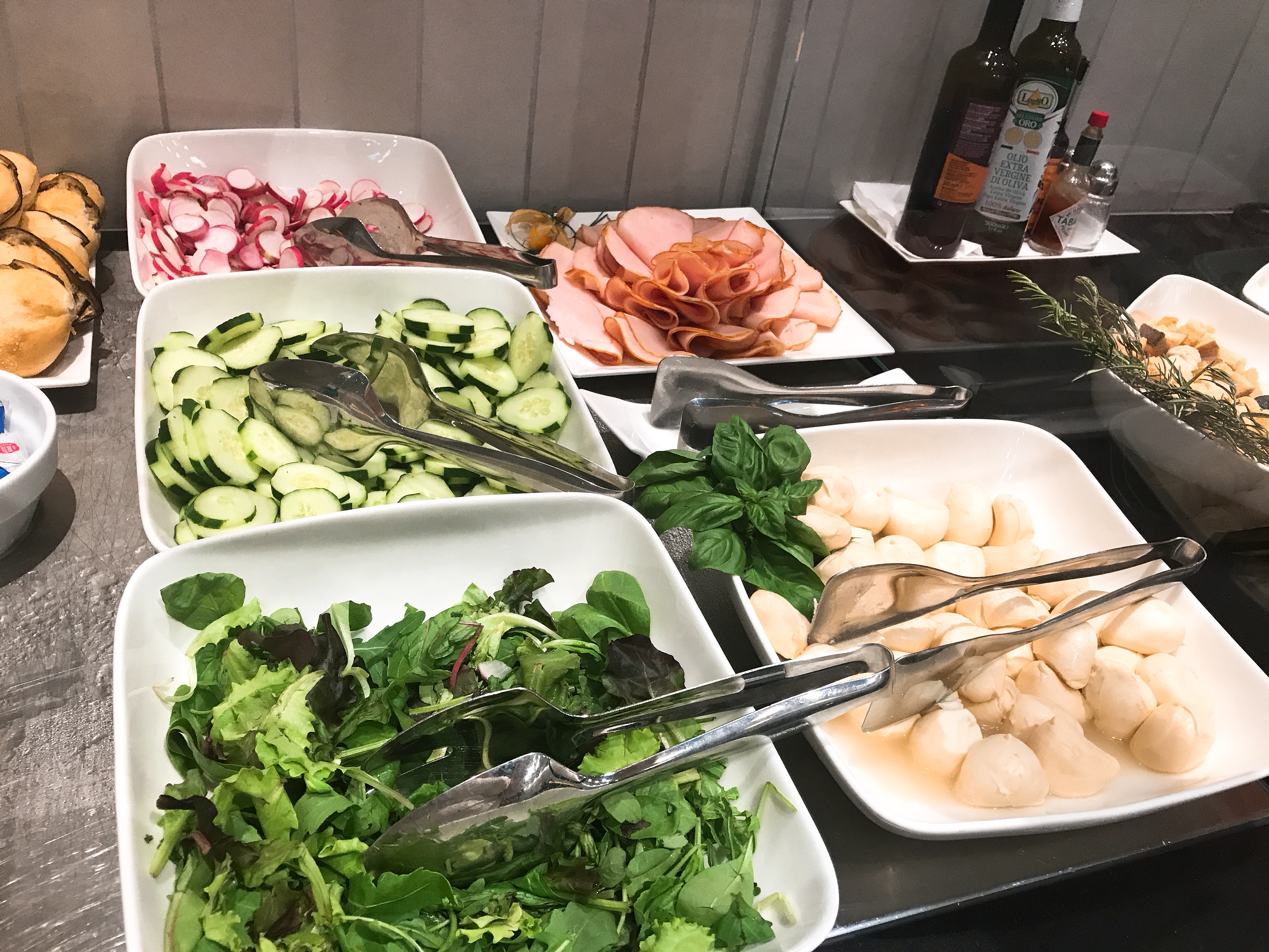 We had arrived quite early for our 5pm flight so when we first arrived there was quite a strange mixture of food out for around 3.30pm including breakfast pastries which I thought was very odd. The salad selection looked OK and there was also soup, filled rolls and biscuits available along with some bar snacks.