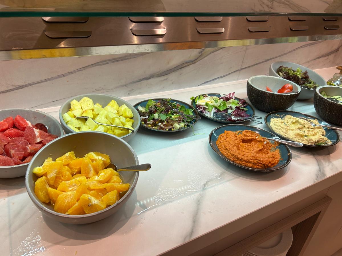 You seat yourself and also get tea and coffee from a machine. I thought the selection was very good with the items changing day to day so you didn’t get bored. I was not expecting to get an Asian selection, but there were a couple of dishes a day, such as noodles or fried rice. In addition, they had a range of Lebanese-type dips some days, such as hummus and baba ganoush. They also had local Montenegrean options, gluten-free options, and plenty of high-end items like smoked salmon and cured meats. I found the bread particularly delish and there was a good range that you could cut yourself. The fruit was also excellent, in so many places it is hard and sour but the fruit here was perfectly ripe and juicy.