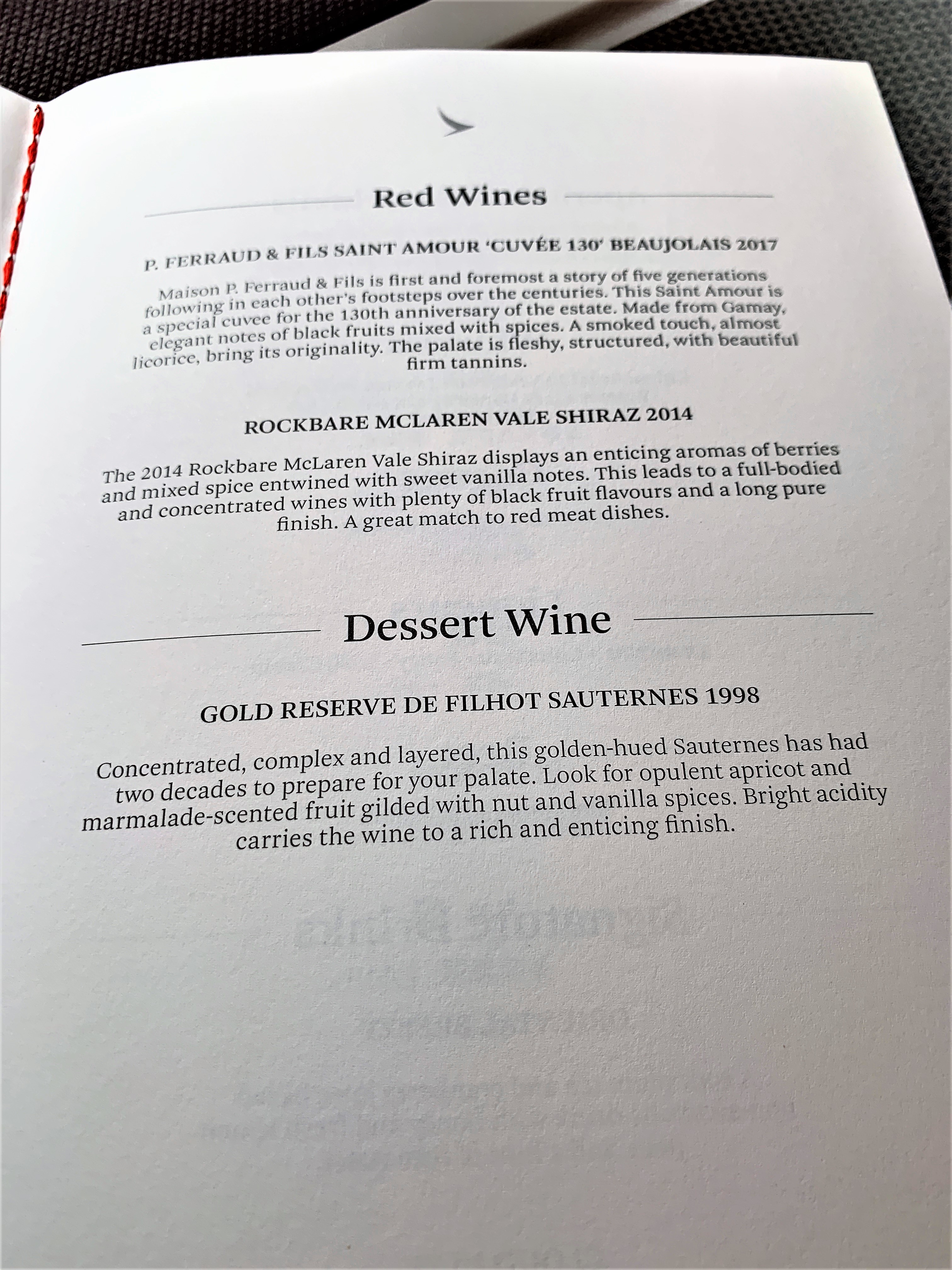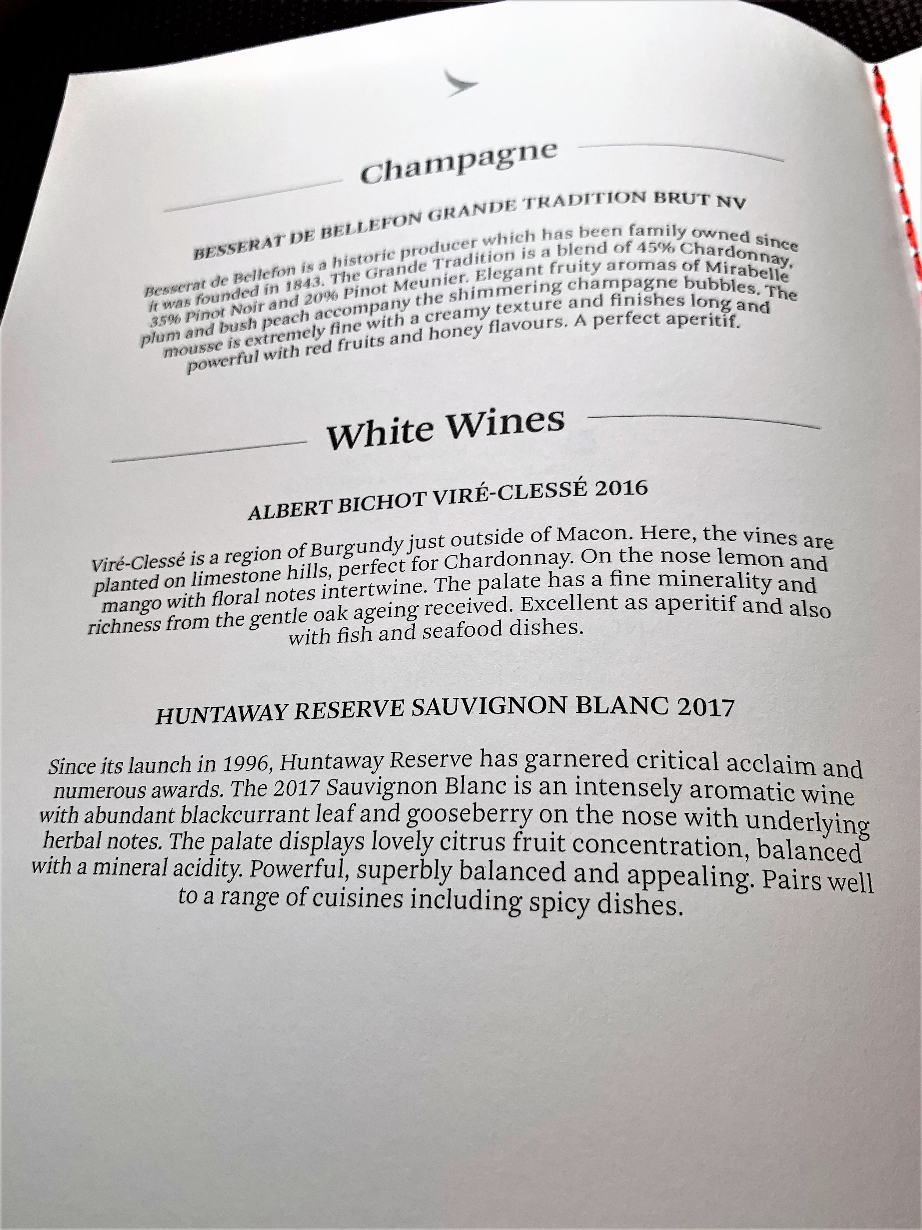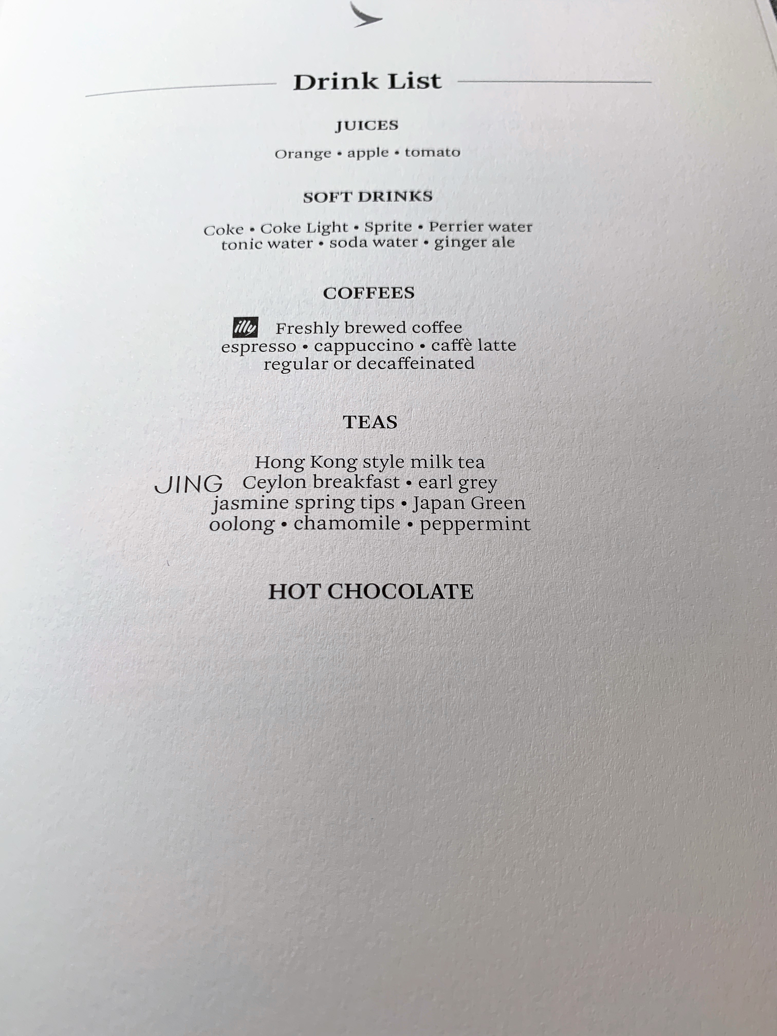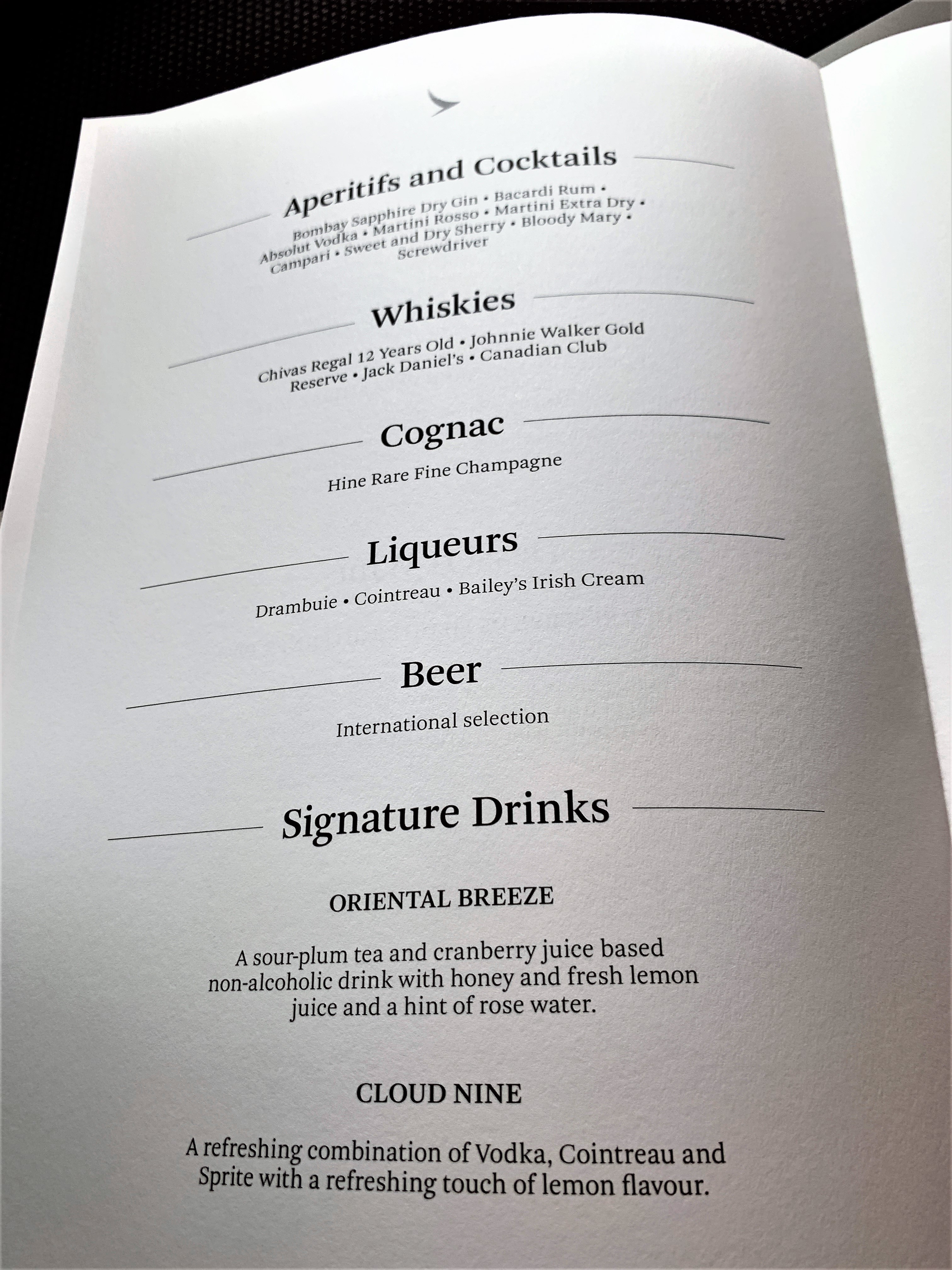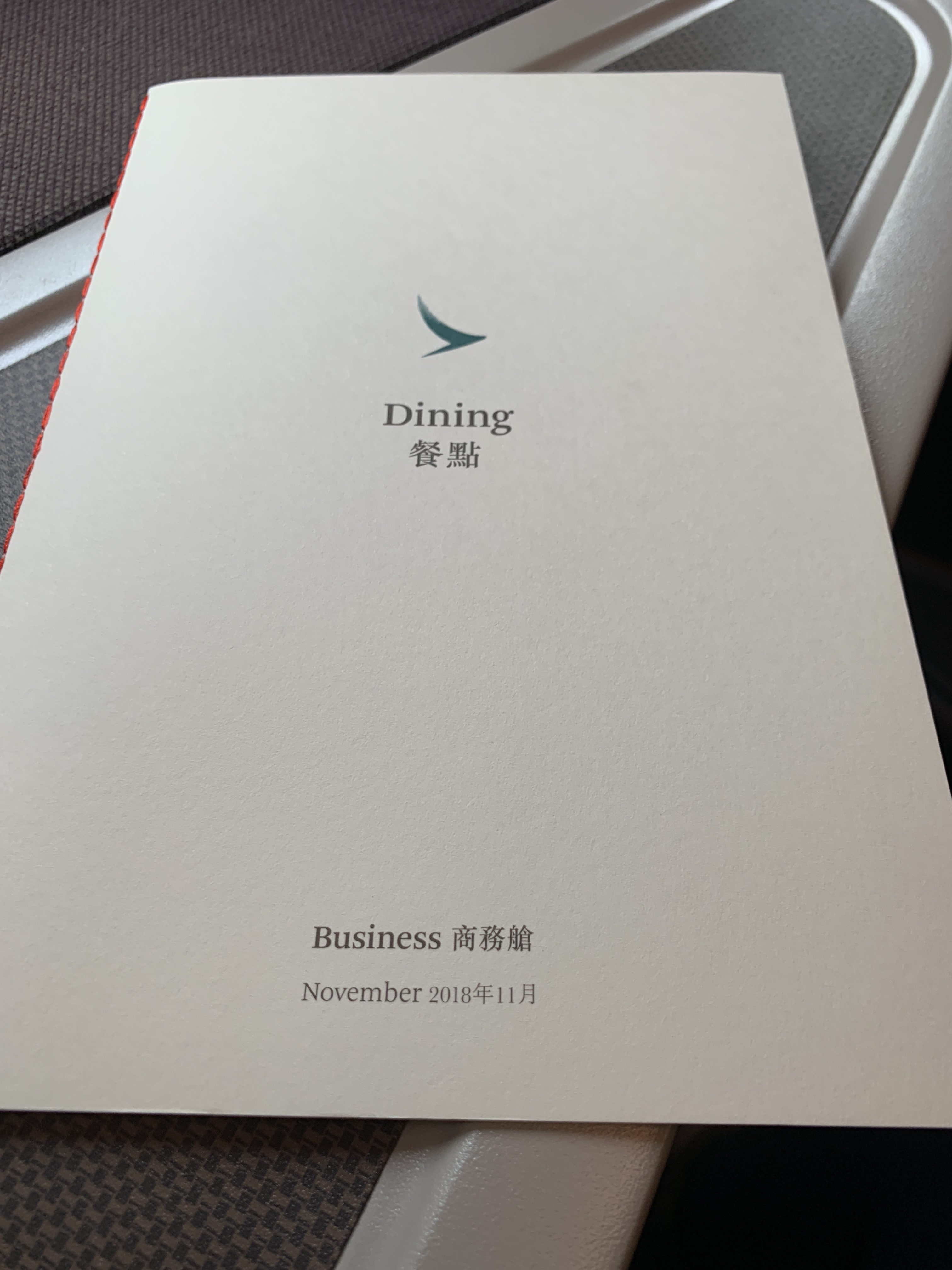 Then I was greeted by name and handed a menu.  Finally, the CSM came up to welcome me back on board as Emerald and introduce herself. She let me know that we would be arriving early into Hong Kong provided there was no holding. She was charming and professional like the rest of the crew. I was impressed that I was offered a top-up of champagne for this short 2-hour flight before we took off.