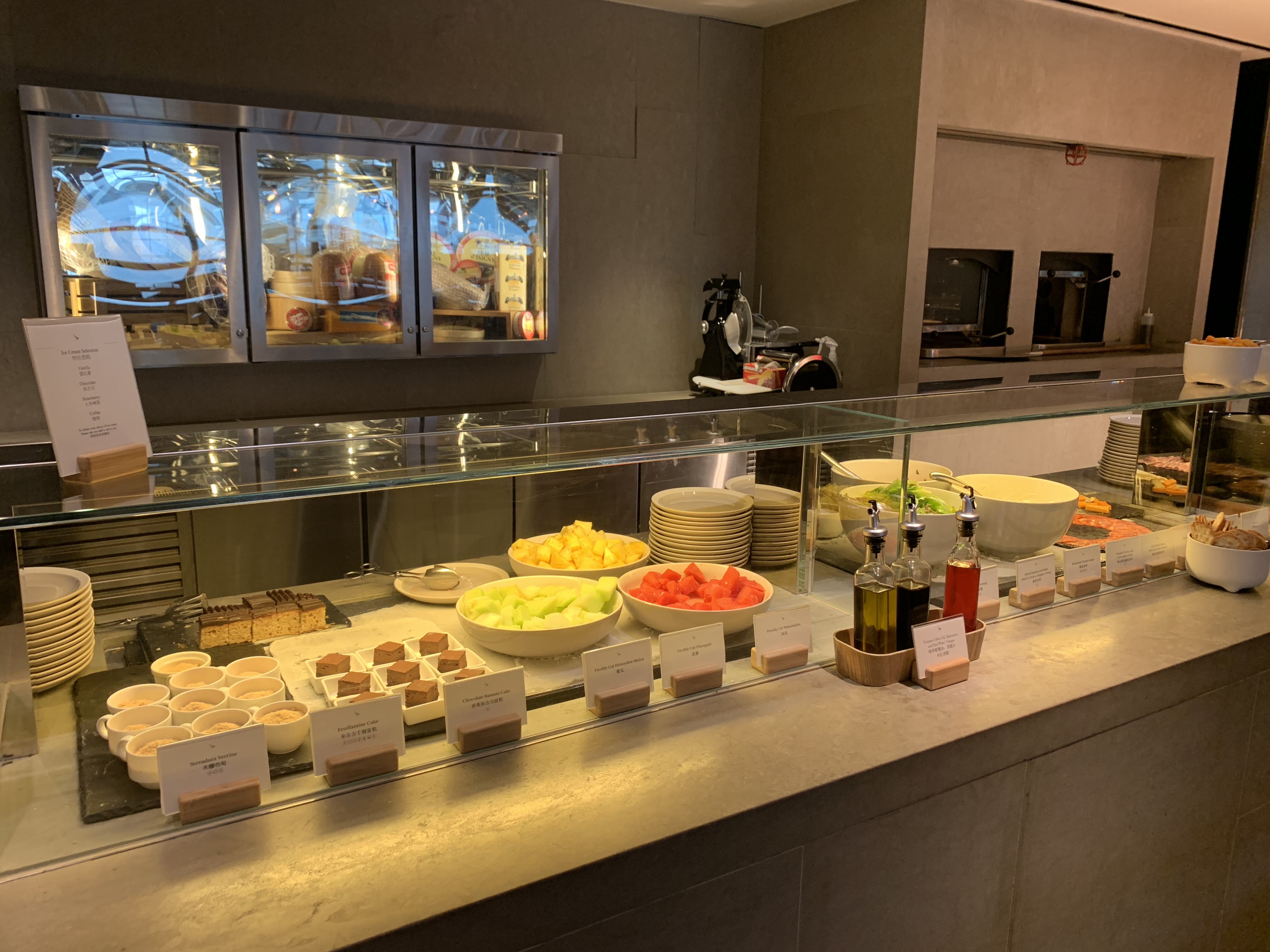 For food, there is a choice of the self-service buffet options including hot and cold Asian and Western dishes or the ubiquitous Cathay Noodle bar which are both upstairs.