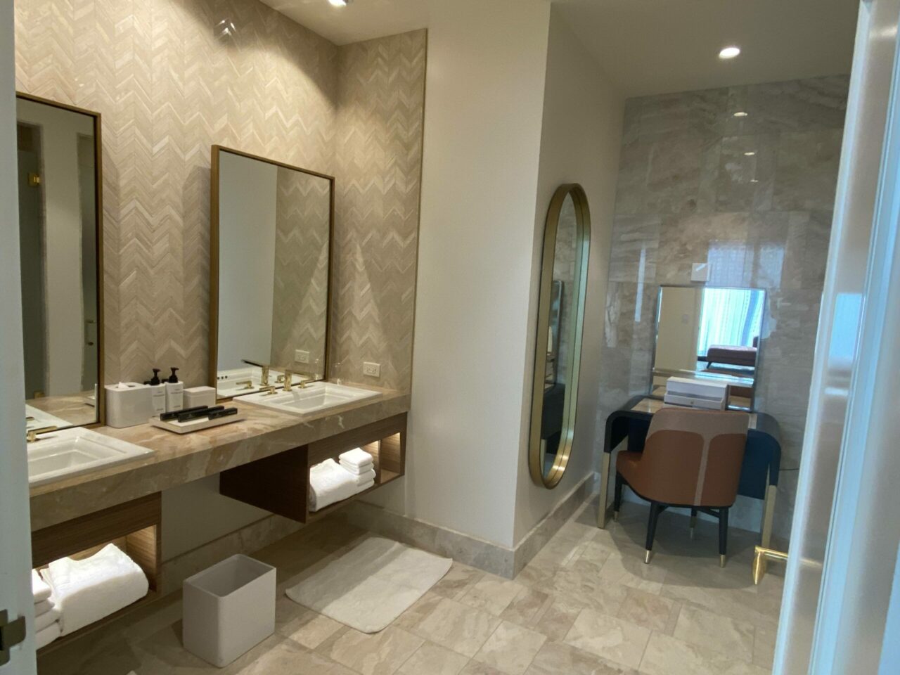 The bathroom felt luxurious with marble finishes although I did miss having a bath to soak my Vegas weary body in. Up until a few years ago most hotels had baths in the rooms but now they seem to be switching to shower only which is annoying. I liked the twin sink area which was well lit with a magnifying mirror as well. Strangely Conrad has a rain shower head but Crockfords which is more expensive doesn’t. There was also a seat area in the shower should you be so exhausted by Vegas you need to sit down!! It’s also handy for shaving your legs!