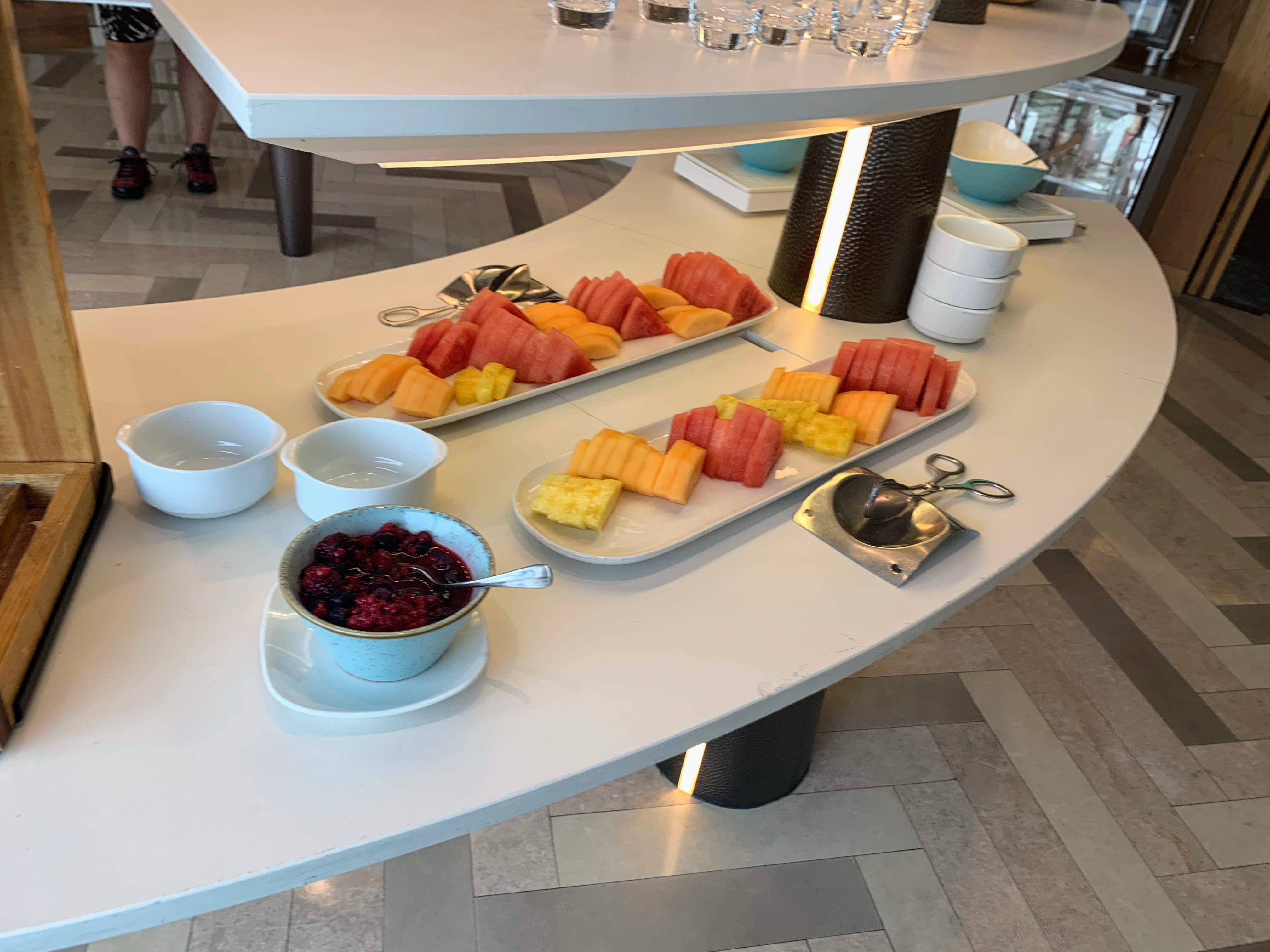 In the room was some welcome fruit and chocolates. I wouldn’t say that room was particularly luxurious in decor but it had a quiet, modern elegance to it and felt a reasonable size for Hong Kong. If you needed to work there was a good size glass desk from which you could distract yourself with the views. The TV was fixed to the wall but had a media panel so you could connect your own devices if you wanted to.