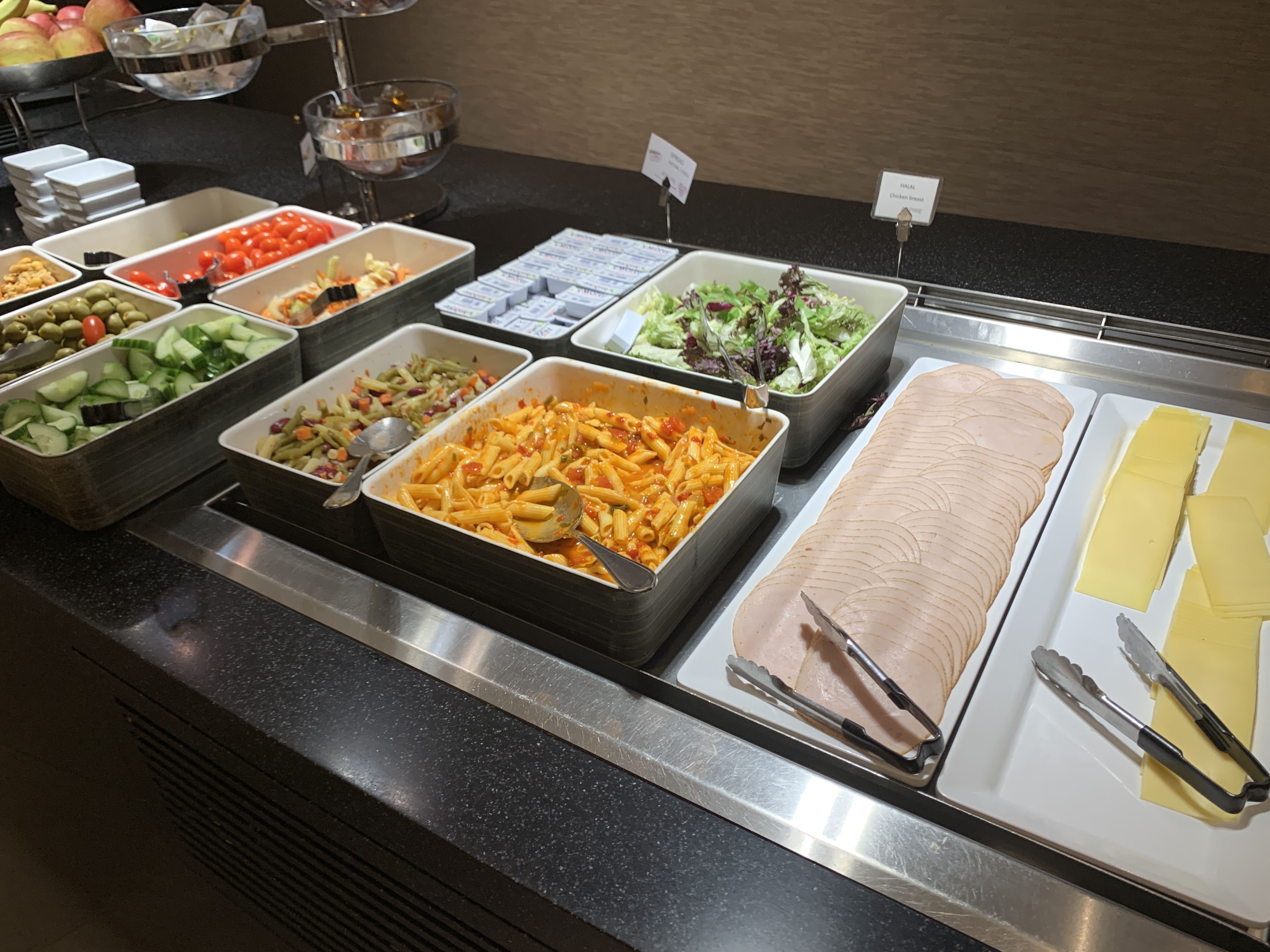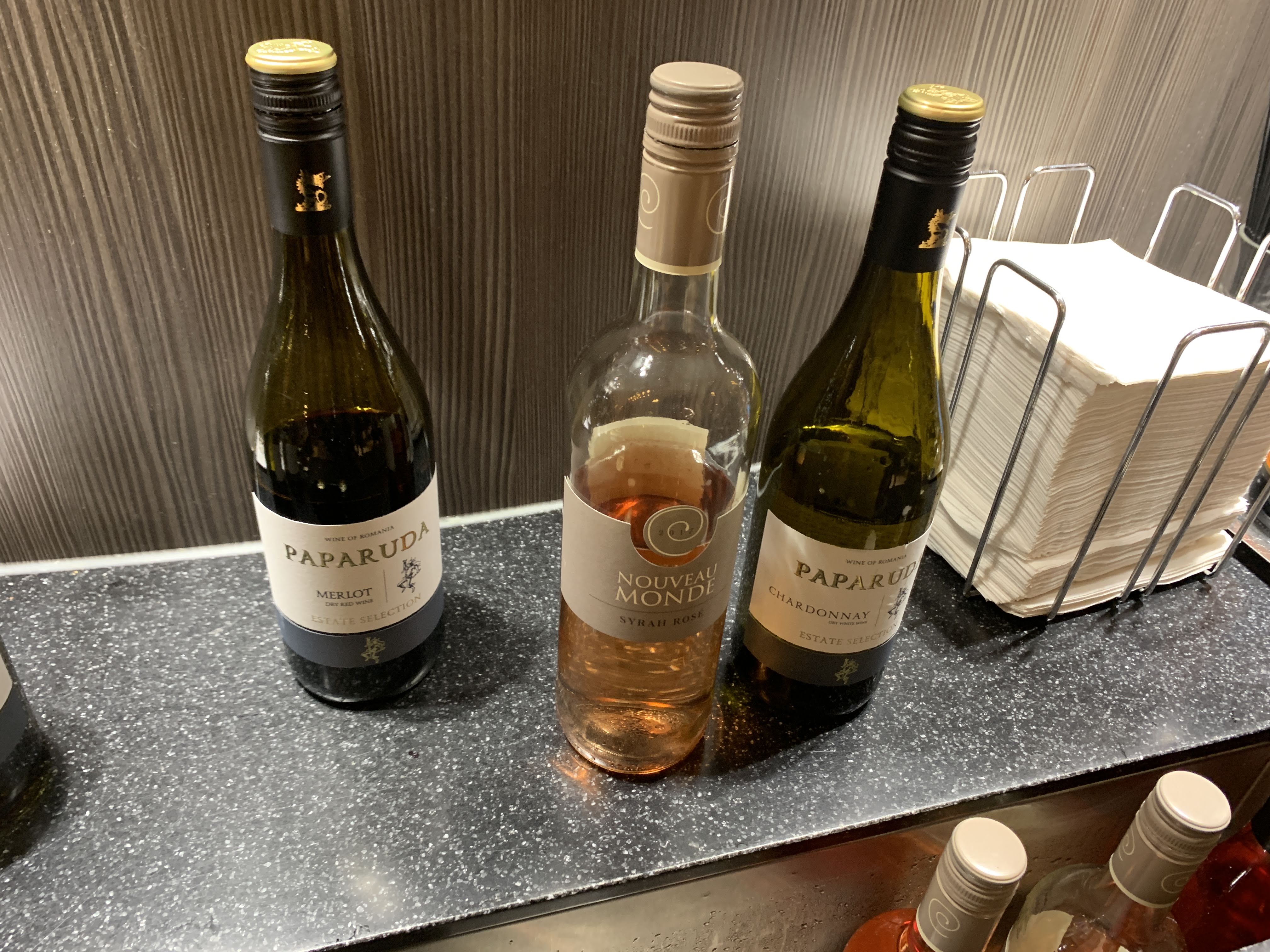 The lounge looked smart and modern with a good view of the airfield. The food and drink were pretty basic as you would expect with many third-party lounges. To drink there was Romanian white, red and rosé wine, draft Heineken including a 0% alcohol version and some pretty basic spirits. There was no hot food apart from soup but a reasonable range of salads, bread and pastries. The protein selection left a lot to be desired though with some slightly plasticky looking cheese and chicken (I think ?) slices.
