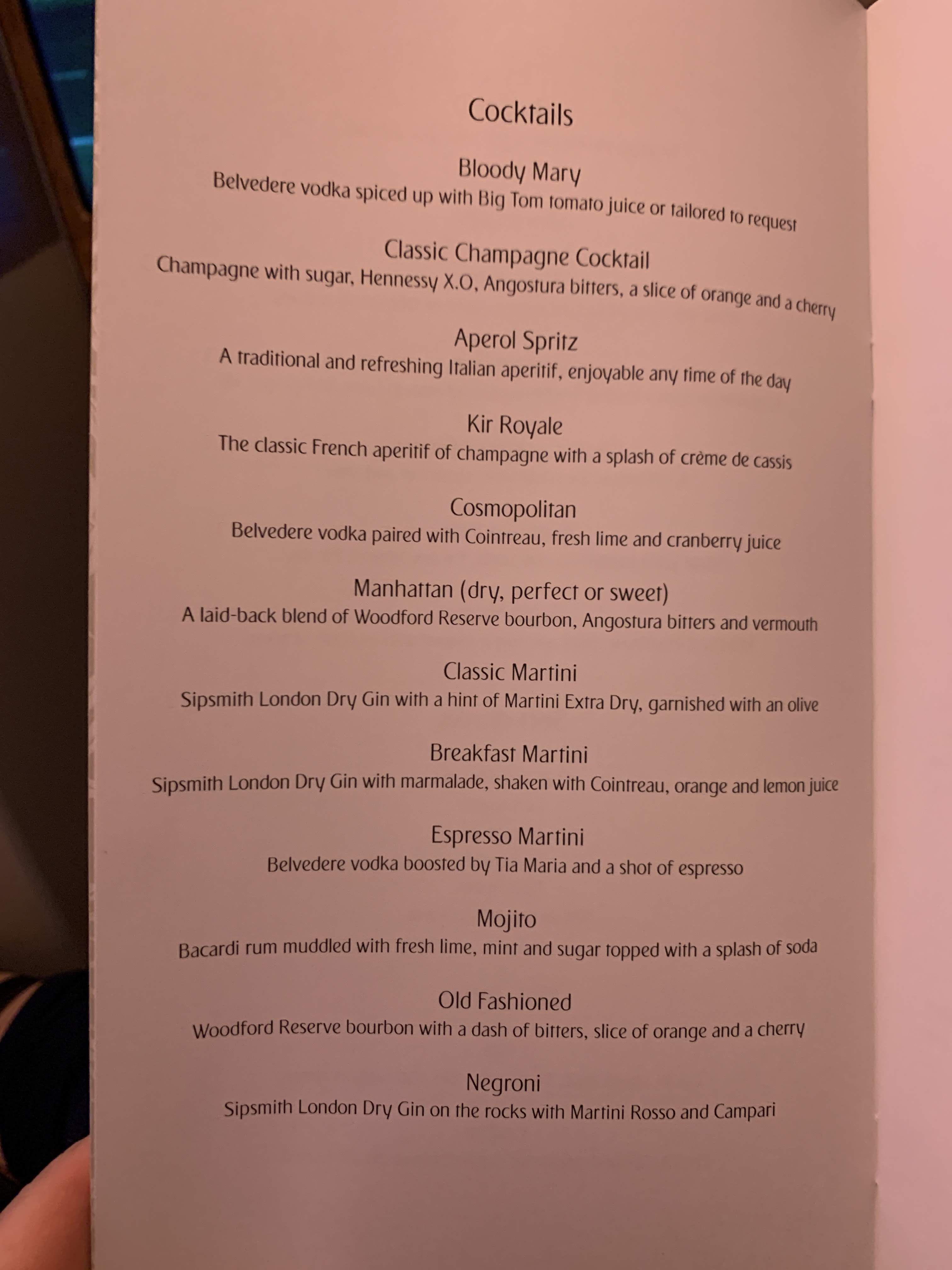 There was also a comprehensive selection of drinks which mostly are very high quality. Here are the wine, cocktails and spirits.