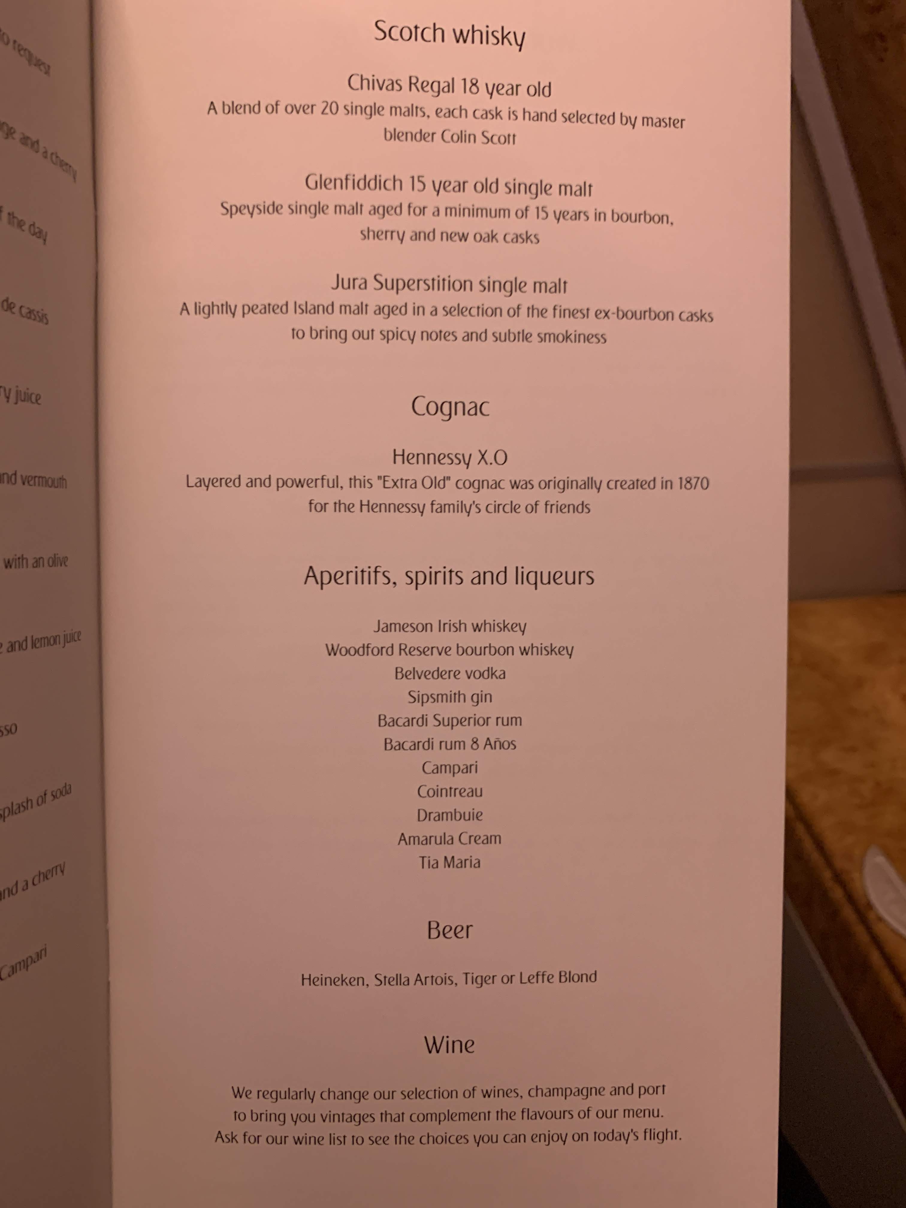 I was keen to get some sleep so I forgo pudding/cheese. However, I spotted that they did have Hennessy XO cognac (£130 a bottle) on the menu, so I finished with one of those which was delivered with some chocolates. It was nice to see that they had proper brandy glasses to serve it in, even in business class. Just before arrival, I had a cappuccino which while nowhere near a good one on the ground was still pretty good. It had plenty of froth although the foam could have been a bit denser.
