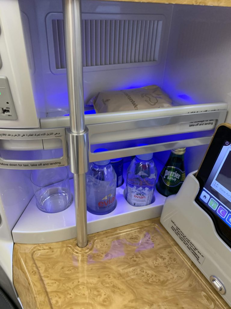 There was, of course, the infamous mini bar which I know people say is pointless but I quite liked it. Yes, I am never going to want to drink a warm can of Pepsi. But having the two bottles of still water there when I wanted them without having to wait for cabin crew was useful.