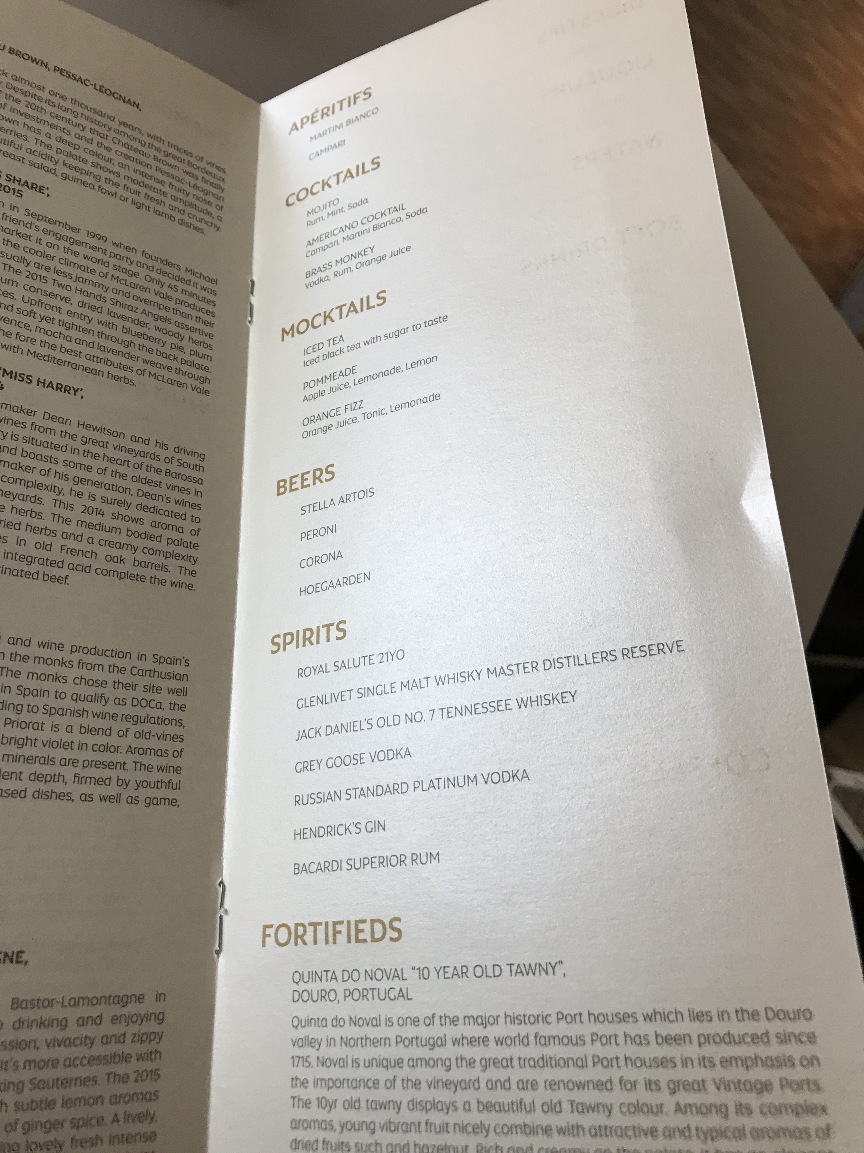 On boarding, I was welcomed with a warm towel, a bowl of dates and a glass of Charles Heidsieck Vintage Brut 2006 champagne. I enjoyed the champagne and it is a reasonable quality retailing at around £75 a bottle if not quite Krug. I liked the fact that the F&B Manager obviously knew his stuff like a proper sommelier. Each time he poured a new wine he showed me the bottle, talked a little about the wine as I tasted it before he poured the full glass. The whole thing very much felt like a restaurant experience from start to finish.