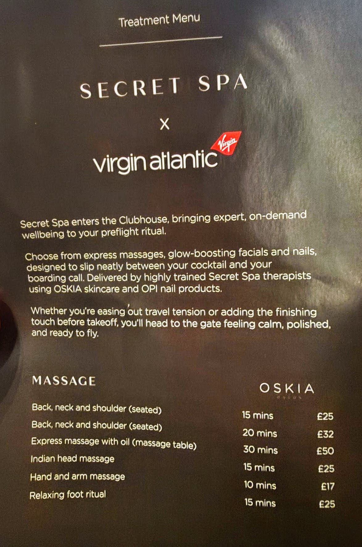 This service is available until 30 April 2026. However, apparently, if it is a success, they plan to make this a permanent feature. Feedback from passengers so far has been very poisitive so it looks good for the long term. Treatments are subject to availability and are bookable on arrival at the Clubhouse for guests traveling in Upper Class.