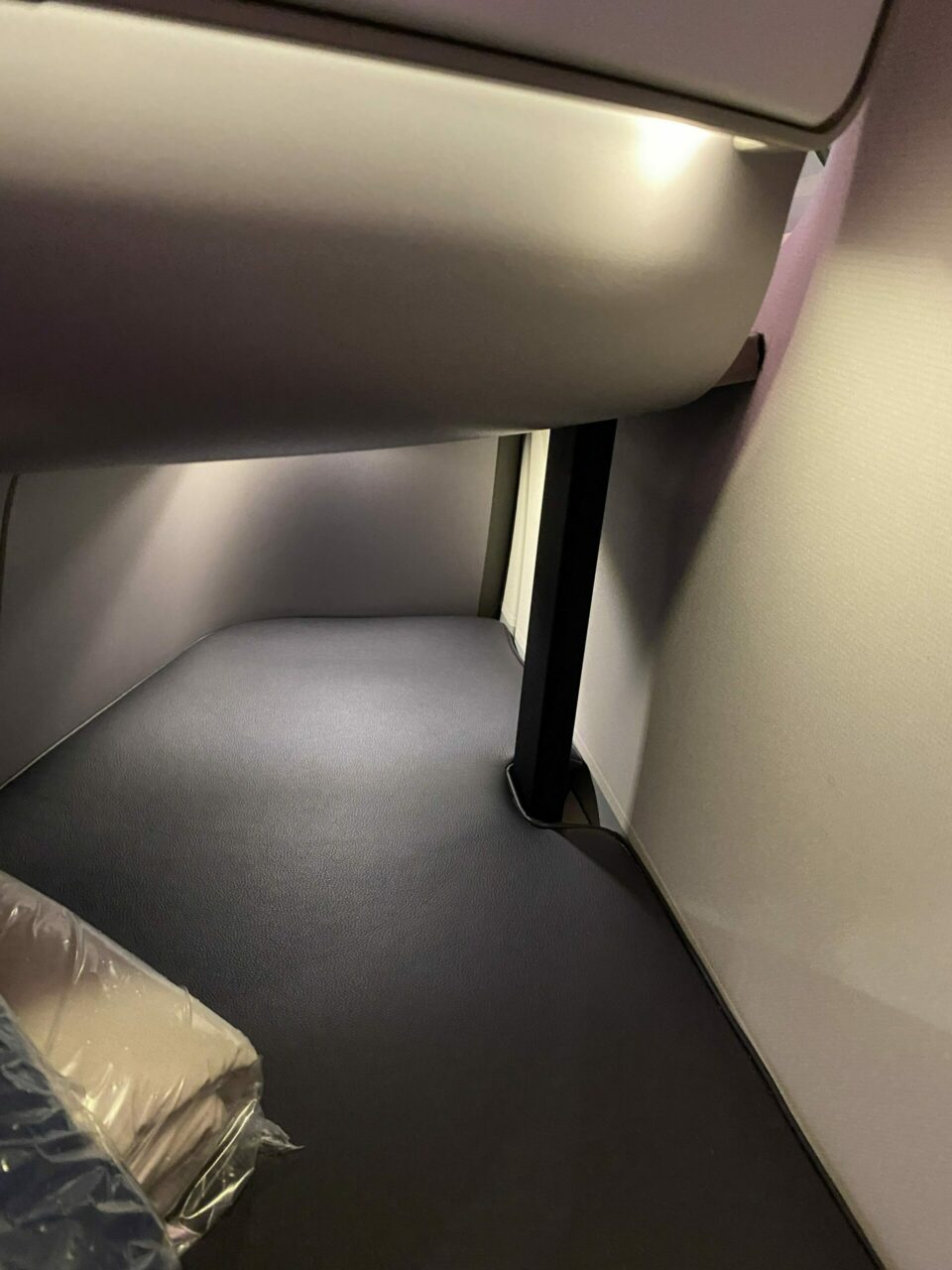 I managed to find an extra pillow so with slightly more legroom thanks to the lack of pole, I did sleep a bit better on this flight. It was definitely still a bit hard though.