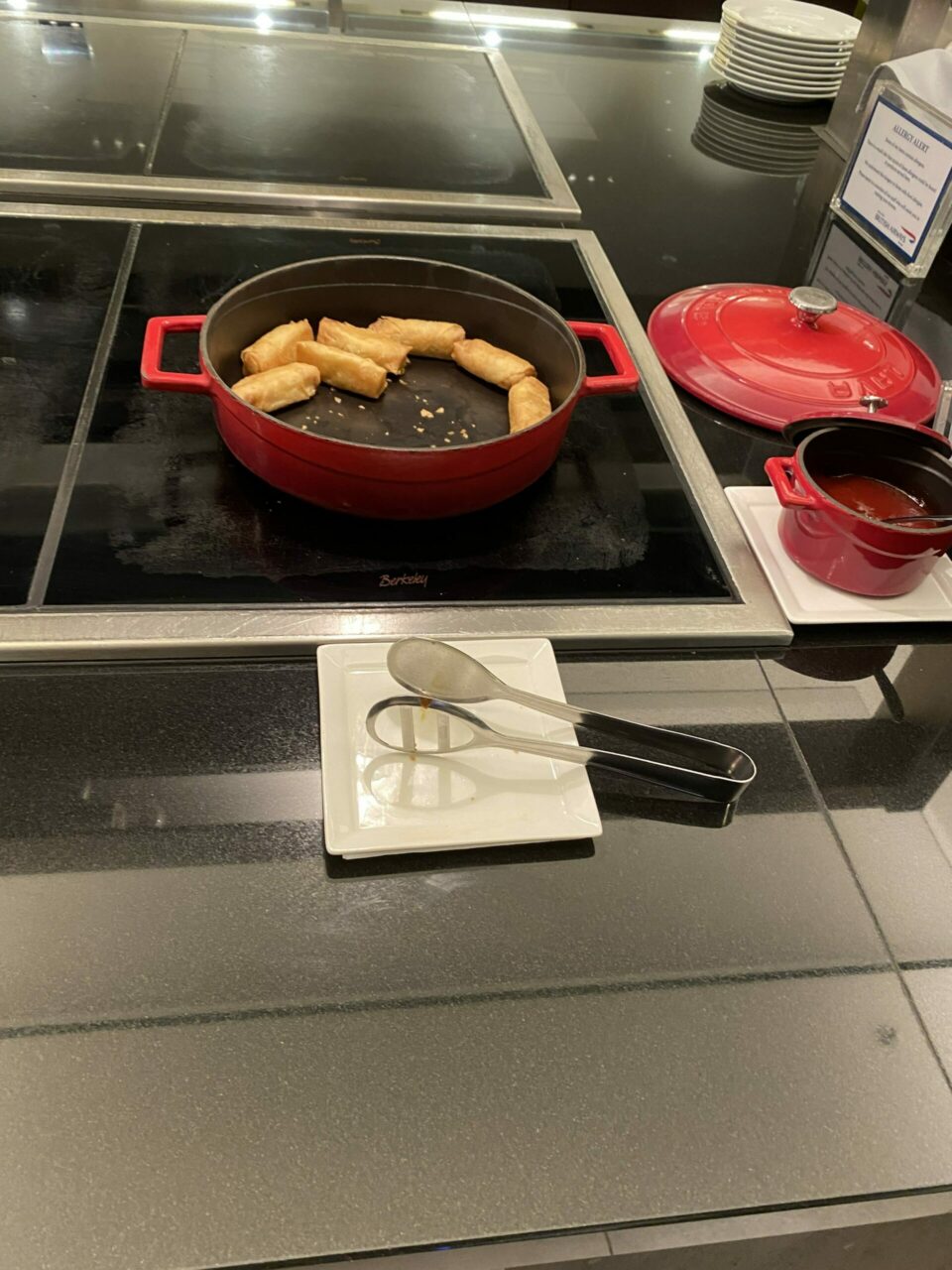 There is a small buffet by the dining area but they also have some great local dishes to order. They had starters, a couple of hot mains and some desserts on display. They looked a lot nicer than they tasted! The food to order was laksa or prawn or vegetable dumplings.