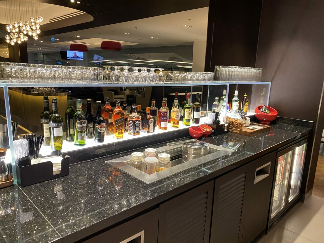 The Marhaba lounge is actually quite pleasant with some hot food and barista-style coffee. However, the drinks selection is not anything special.