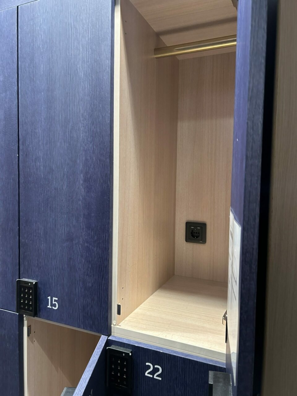 On entering the lounge, you walk past a self-storage area for luggage and the showers and washrooms. The lockers even have a socket inside, which I thought was a great idea if you wanted to charge a few things while you were having a sauna or dinner.
