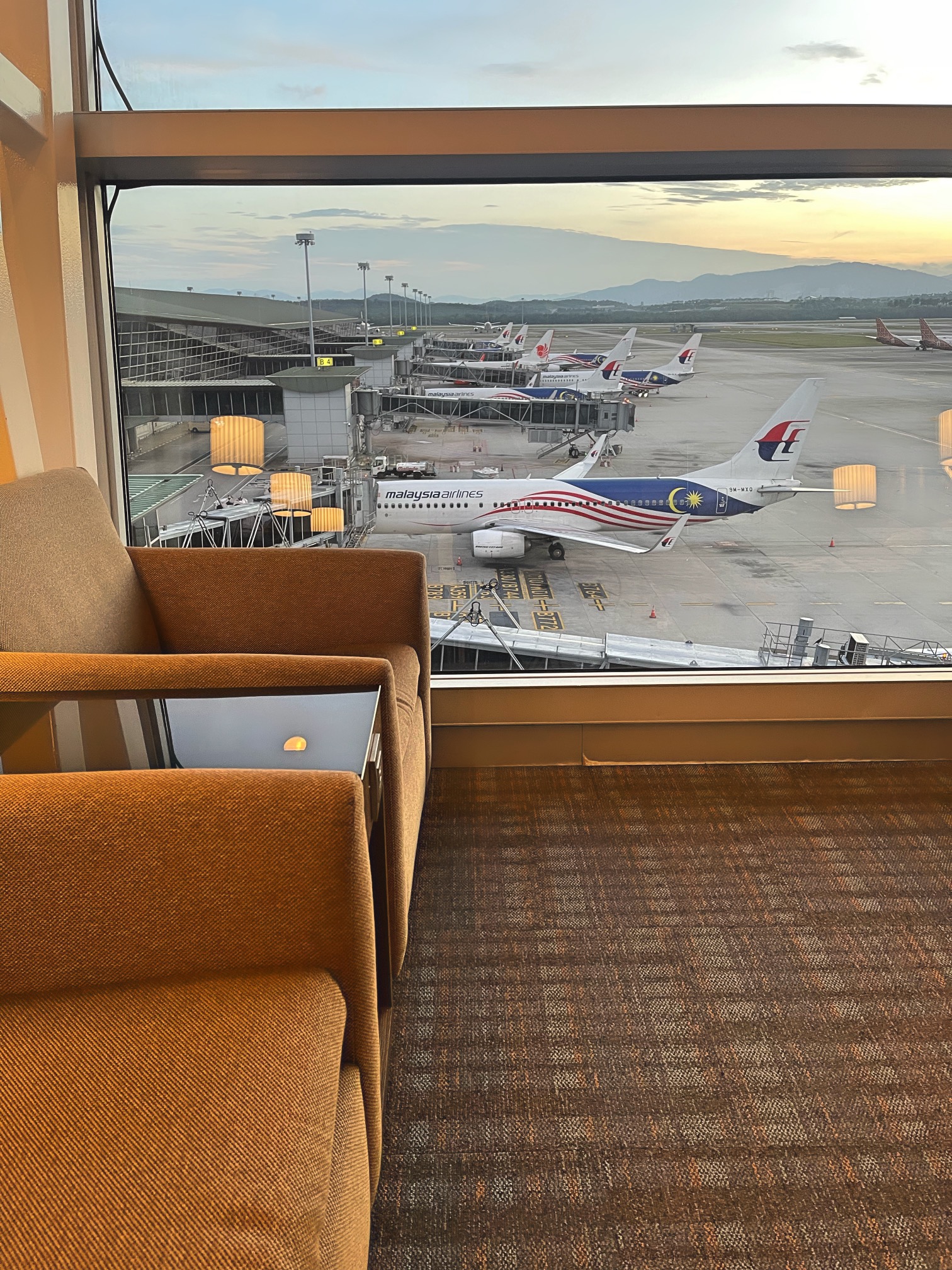 What was way better than expected was the food offering, which was extremely extensive, varied and constantly replenished.  A bar was available and there was an ‘iced salted coffee’ advertised which piqued me and was one of the most delicious things I have ever drank.  The lounge went from rammed to almost empty in the space of about ten minutes so I took the opportunity to grab some snaps. From my vantage point by the window in the lounge, I saw my 737 land from KL at 12:20 and headed to the gate about ten minutes later.