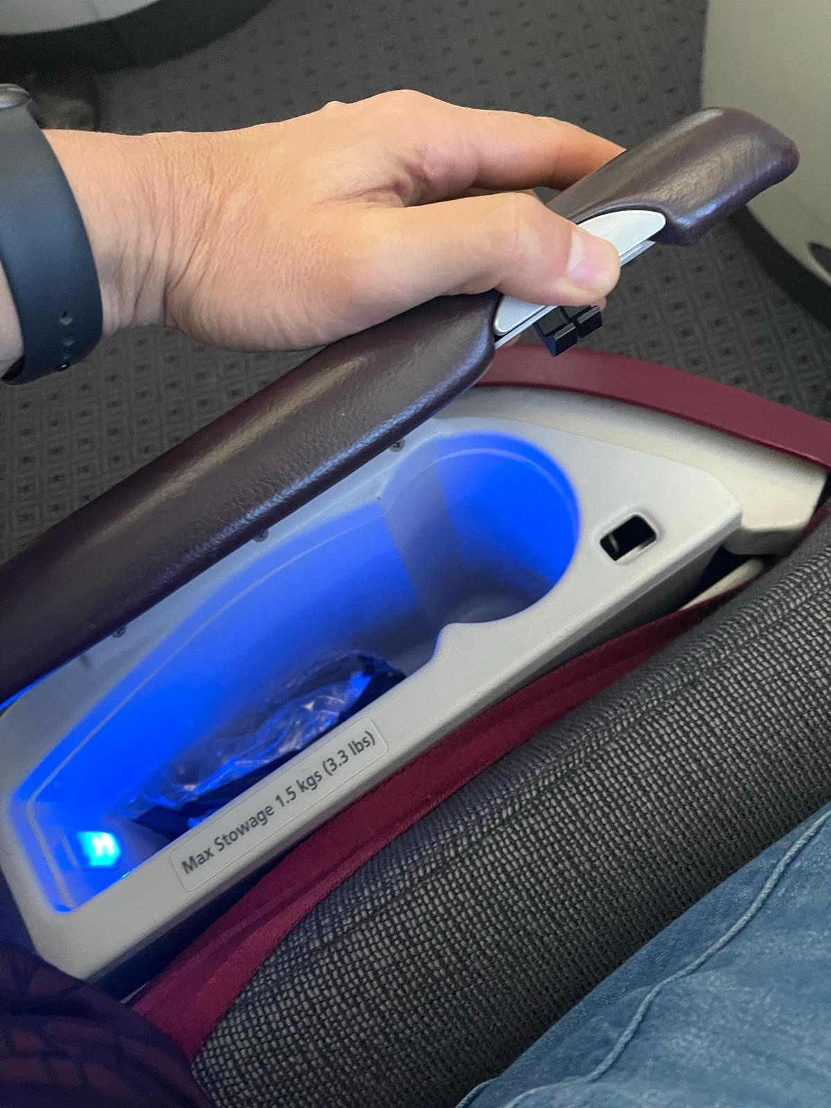 There are also plenty of stowage options with the 787 seat including within the wide armrest, a cupboard at floor level, space underneath the ottoman, and a draw at feet level.