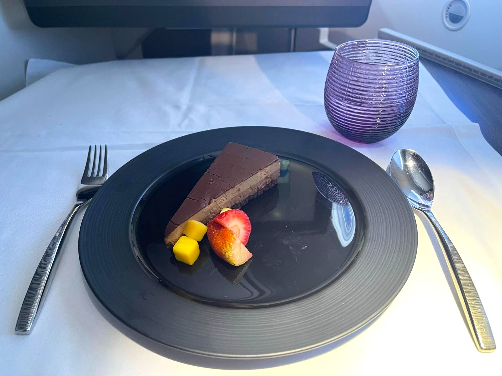 Numerous top ups later I was asked if I would like dessert, I asked for the cheese plate, but they had run out, so I went for the chocolate dessert instead along with an espresso.