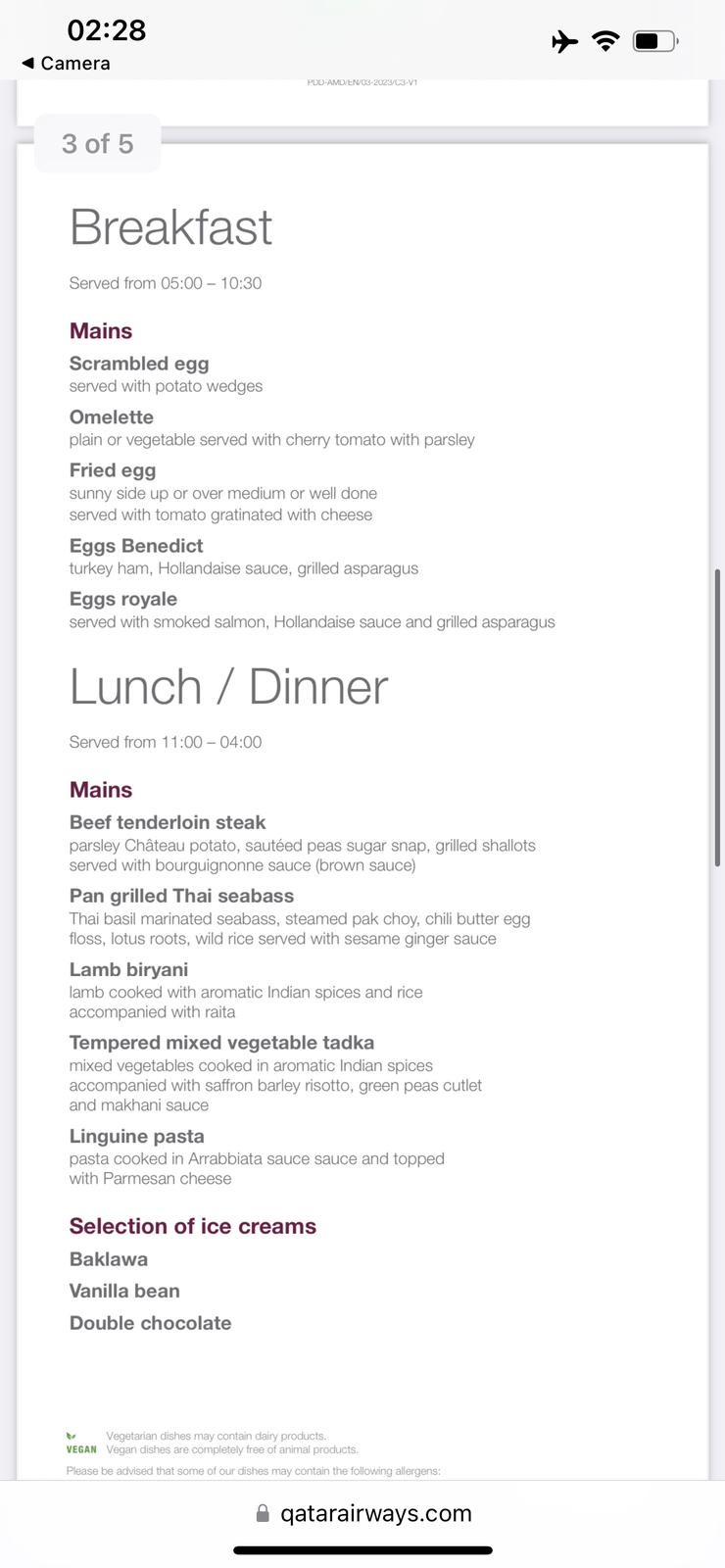 I woke up about three and a half hours before arrival (nature called) and there was a small snack station set up in the middle of the cabin with some whole fruit and packaged snacks. Feeling rested and while waiting for the loo to become vacant, I decided that now was a good time to caffeinate so asked the crew for a coffee. I had a brief chat with the crew and after talking about my previous life as crew at BA they opened up and discussed how much things have improved for them at QR under the new CEO which was nice to hear. They asked if since I was awake, I would like my meal put on, absolutely!